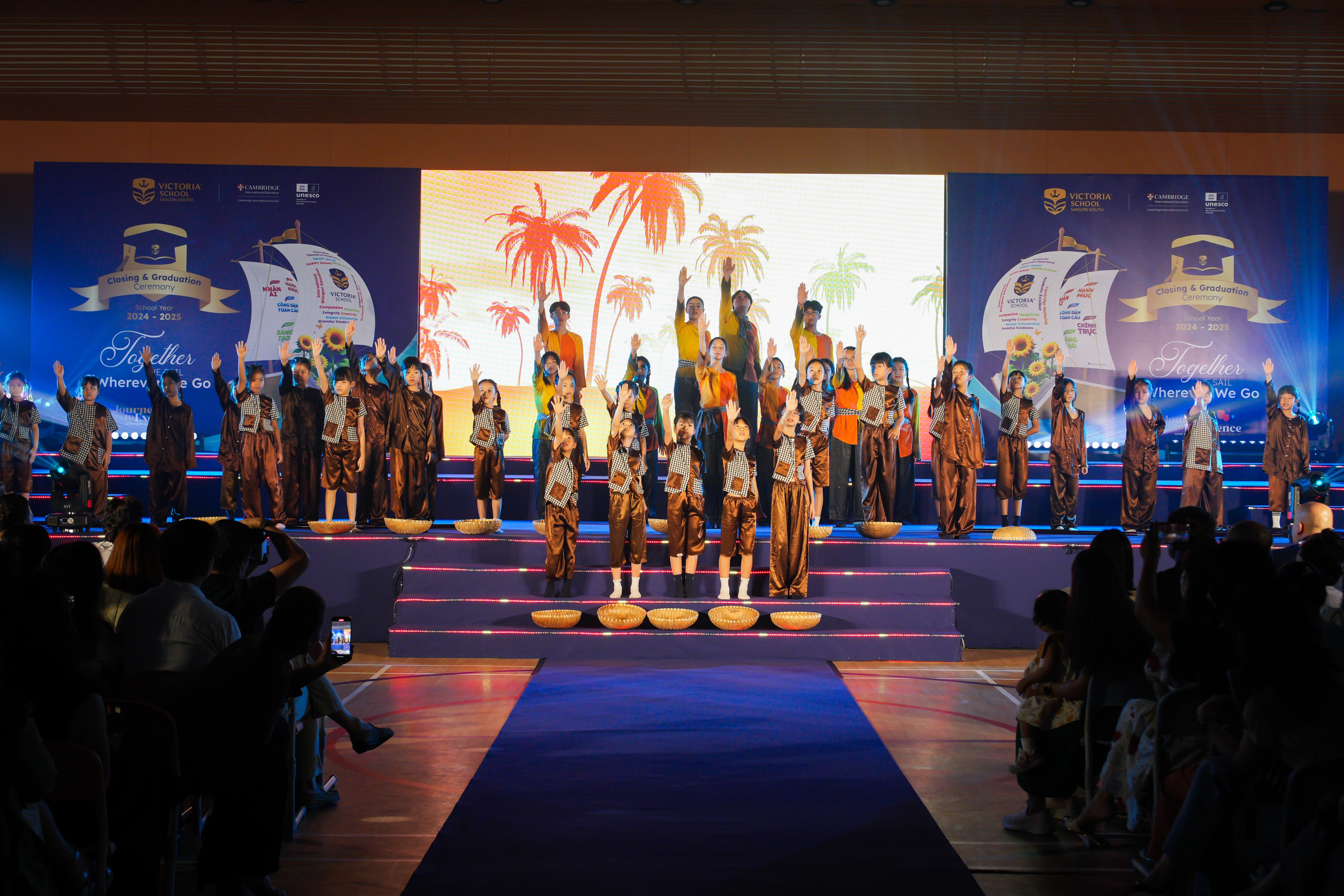 Lấy hình ảnh con thuyền tri thức làm chủ đạo, Lễ tổng kết của Victoria School nhắn nhủ đến các bạn học sinh về hành trình vươn ra đại dương. Năm học 2024 – 2025 là một chặng đường trên hành trình ấy với nhiều thành tích đáng nhớ. Tại Lễ tổng kết, các “thuyền viên” xuất sắc với những thành tích học tập, rèn luyện nổi bật đã được vinh danh sau một năm phấn đấu không ngừng.