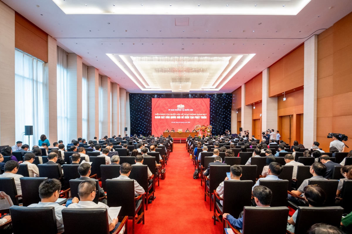 Theo Chủ tịch Quốc hội Trần Thanh Mẫn, trong không khí phấn khởi hướng tới kỷ niệm 80 năm Cách mạng tháng Tám và Quốc khánh 2/9, Diễn đàn Quốc hội về hoạt động giám sát thể hiện sự đổi mới không ngừng, nhằm đánh giá toàn diện và đề xuất giải pháp nâng cao hiệu lực, hiệu quả giám sát. Hoạt động giám sát đã đạt nhiều kết quả nổi bật, góp phần quan trọng vào phát triển kinh tế - xã hội và hoàn thiện thể chế. Trước hết, công tác xây dựng, hoàn thiện thể chế giám sát được tăng cường, cơ bản đáp ứng thực tiễn, với sự phối hợp chặt chẽ, kịp thời giữa Quốc hội, Chính phủ, Mặt trận Tổ quốc Việt Nam, Tòa án nhân dân tối cao, Viện Kiểm sát nhân dân tối cao, Kiểm toán nhà nước, Thanh tra Chính phủ, các bộ, ngành, địa phương và cơ quan báo chí.