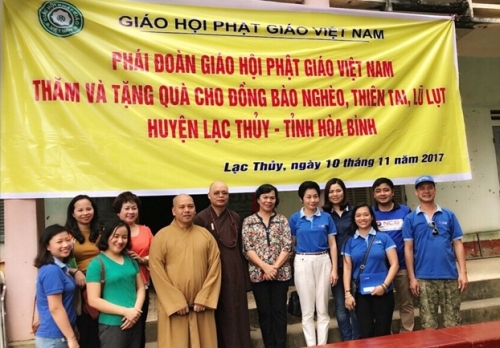 Với tinh thần “Tương thân tương ái”, chia sẻ với người dân bị thiệt hại nặng nề do lũ lụt, từ ngày 9-11/11/2017, Đoàn Từ thiện đã trao tặng 3.000 phần quà là những nhu yếu phẩm gồm mì tôm, nước mắm, đường kính trắng… và 500 triệu đồng tiền mặt tới tận tay đồng bào vùng bão lụt.
