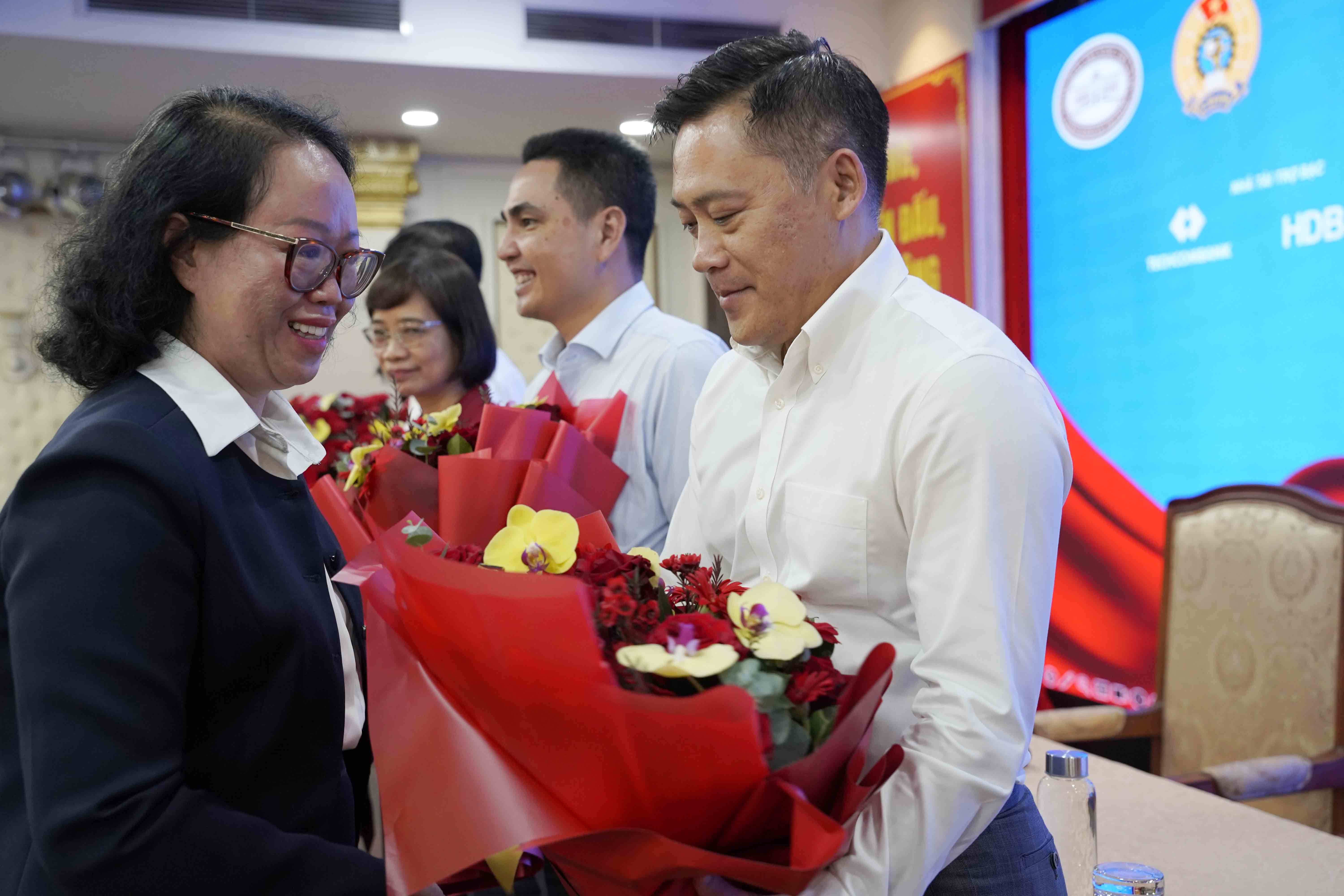 | Bà Trần Thị Ngọc Liên – Phó giám đốc NHNN chi nhánh Khu vực 2 – Thường trực Ban Chỉ đạo Chuỗi sự kiện các này lễ lớn năm 2025 của ngành Ngân hàng TP. Hồ Chí Minh trao hoa cho các ngân hàng thương mại đồng hành cùng Chuỗi sự kiện - Ảnh: Đình Hải |