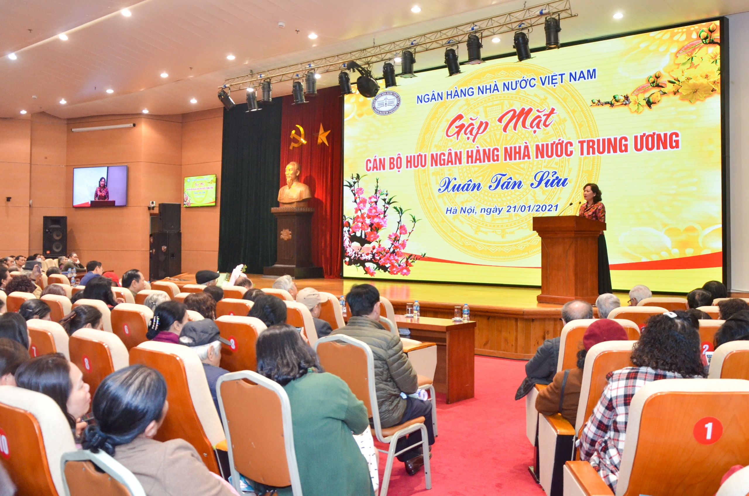 Nhân dịp này, thay mặt Ban cán sự Đảng, Ban lãnh đạo NHNN, Thống đốc Nguyễn Thị Hồng gửi lời chúc sức khỏe tới toàn thể các cán bộ hưu trí, đồng thời phấn khởi báo cáo kết quả thành tích rất tích cực của toàn bộ hệ thống ngân hàng nói chung, cũng như NHNN nói riêng đã đạt được trong năm 2020.
