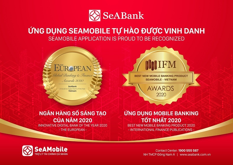 Cụ thể, trong giai đoạn 2019 - 2020, SeABank được Tạp chí The European (Vương Quốc Anh) đánh giá là tổ chức tài chính có kết quả vượt trội trong kinh doanh và tiên phong đổi mới sáng tạo khi áp dụng các giải pháp công nghệ và ứng dụng trí tuệ nhân tạo nhằm nâng cao hiệu quả hoạt động, đa dạng hóa các sản phẩm dịch vụ và nâng cao trải nghiệm khách hàng. Trong đó ứng dụng SeAMobile được đánh giá cao với nhiều ưu điểm, tính năng nổi bật và được trao tặng danh hiệu “Ngân hàng số sáng tạo năm 2020” (Innovative Digital Bank of the Year 2020).