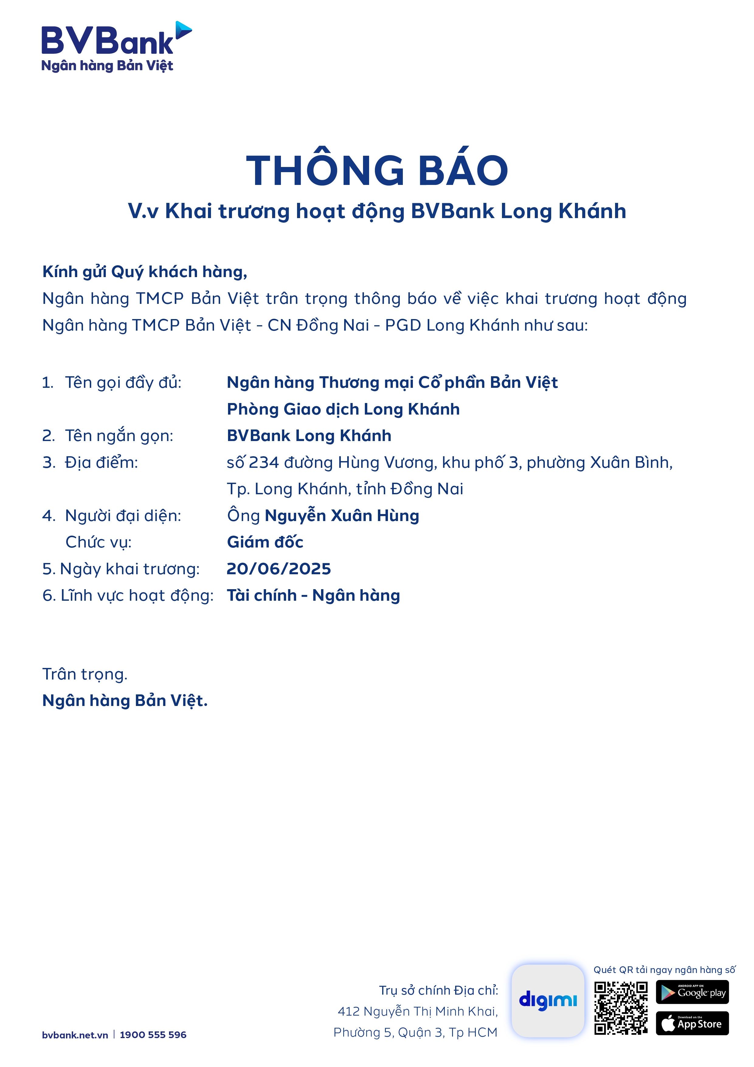 Nhằm giúp khách hàng "sạc năng lượng" cho kỳ nghỉ lễ dài, Ngân hàng tự động Digimi+ của Bản Việt đã có mặt và sẵn sàng hoạt động 24/7 với 26 điểm giao dịch tại 17 tỉnh/thành, đảm bảo giao dịch của khách hàng được xuyên suốt không gián đoạn. Chỉ với một chiếc smartphone và thẻ ngân hàng hoặc CCCD, khách hàng đã có thể tiến hành những giao dịch tài chính thiết yếu ngay tại hệ thống giao dịch tự động chi tiết tại đây https://bit.ly/dia-diem-digimi-plus