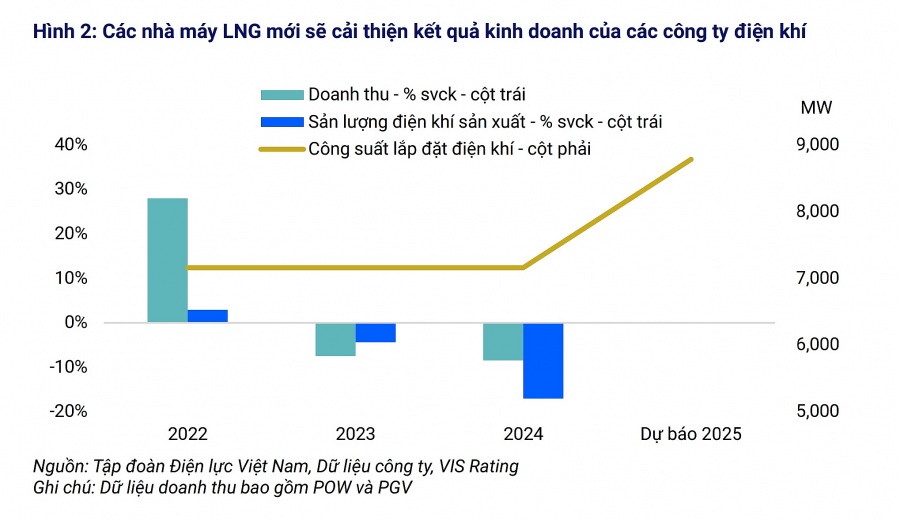 Tuy nhiên, triển vọng phục hồi đang đến gần khi hai nhà máy sử dụng khí LNG nhập khẩu của POW dự kiến vận hành vào quý III/2025. Hai nhà máy này sẽ giúp nâng tổng công suất điện khí thêm 20%, mở ra cơ hội đảo chiều tăng trưởng trong năm tới.