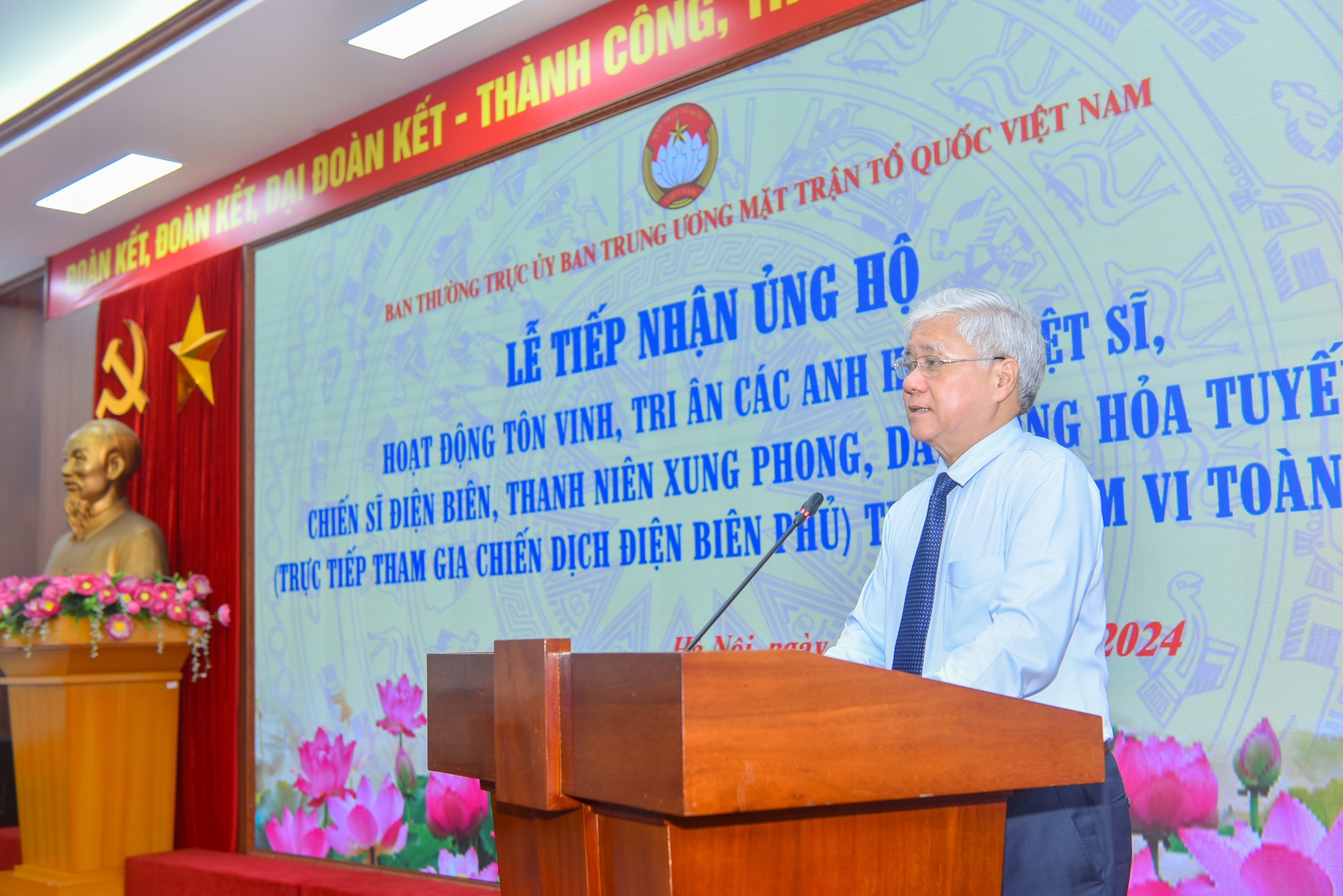 | Đồng chí Đỗ Văn Chiến, Bí thư Trung ương Đảng, Chủ tịch Ủy ban Trung ương Mặt trận Tổ quốc Việt Nam phát biểu tại Lễ tiếp nhận |