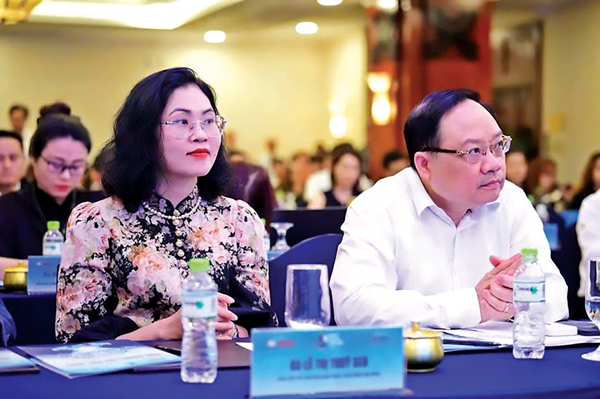 | Tổng Biên tập Thời báo Ngân hàng Lê Thị Thúy Sen và ông Phạm Anh Tuấn, Vụ trưởng Vụ Thanh toán, NHNN tham dự buổi họp báo và trả lời các câu hỏi của phóng viên |
