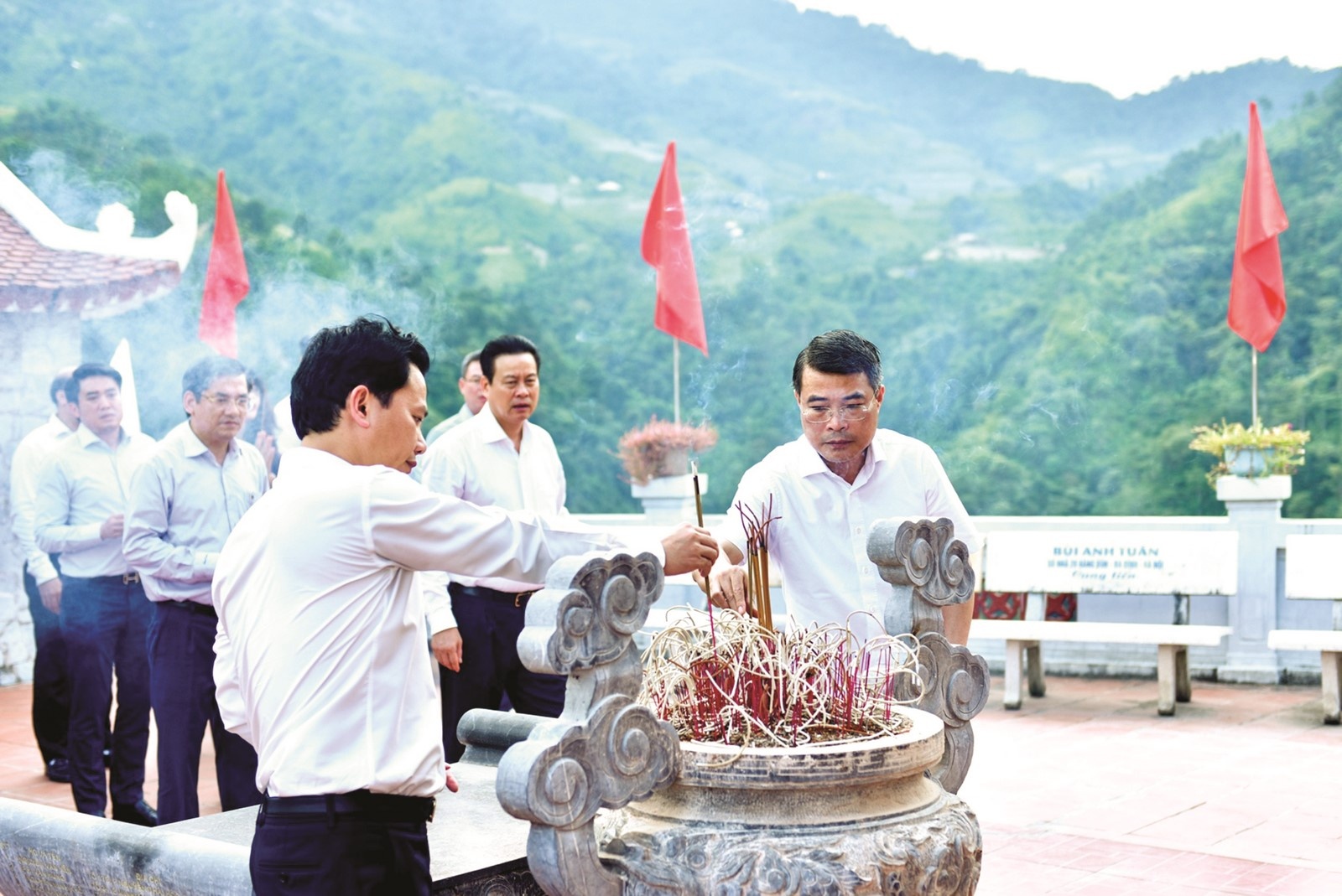 Dâng hương tưởng niệm các anh hùng liệt sĩ tại Nghĩa trang Liệt sỹ Quốc gia Vị Xuyên (huyện Vị Xuyên, tỉnh Hà Giang), Đoàn công tác ngành Ngân hàng bày tỏ lòng thành kính, biết ơn sâu sắc sự hy sinh cao cả của các anh hùng hùng liệt sĩ đã cống hiến tuổi thanh xuân cho nền độc lập, tự do của Tổ quốc.