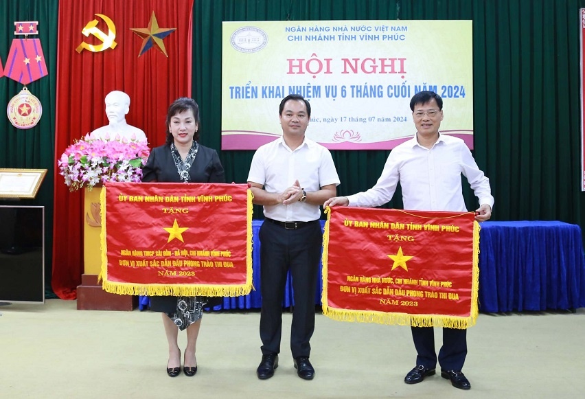 Nhân dịp này, Hội đồng thi đua khen thưởng của tỉnh đã trao tặng Cờ thi đua xuất sắc của UBND tỉnh Vĩnh Phúc cho Ngân hàng Nhà nước chi nhánh tỉnh Vĩnh Phúc, Ngân hàng TMCP Sài Gòn – Hà Nội (SHB) chi nhánh Vĩnh Phúc và trao tặng 4 Bằng khen cho các chi nhánh TCTD trên địa bàn đã hoàn thành xuất sắc nhiệm vụ công tác năm 2023.