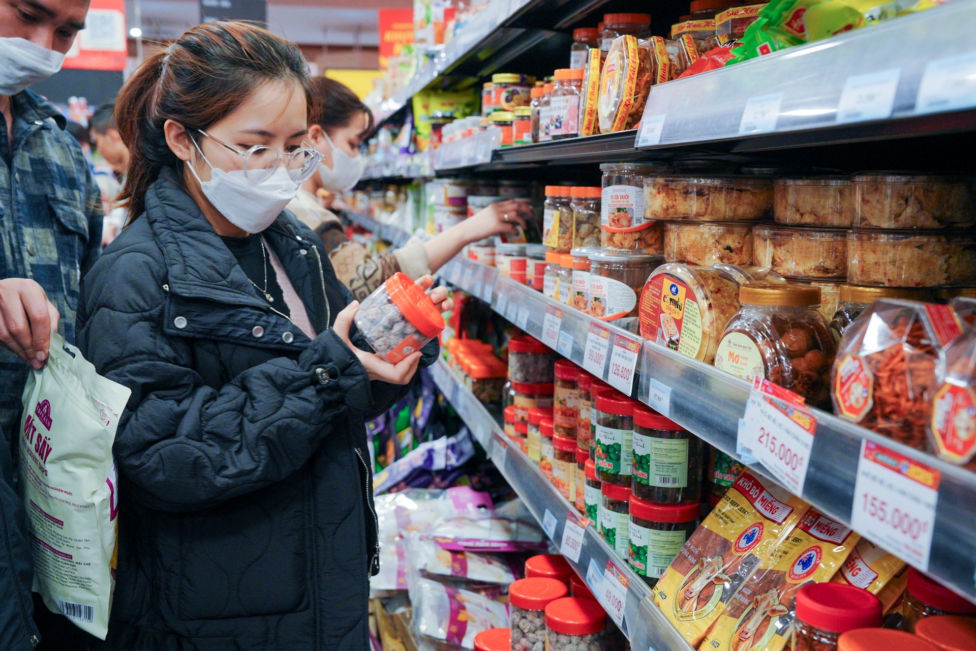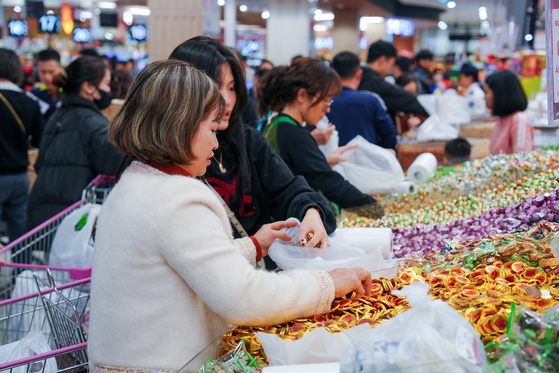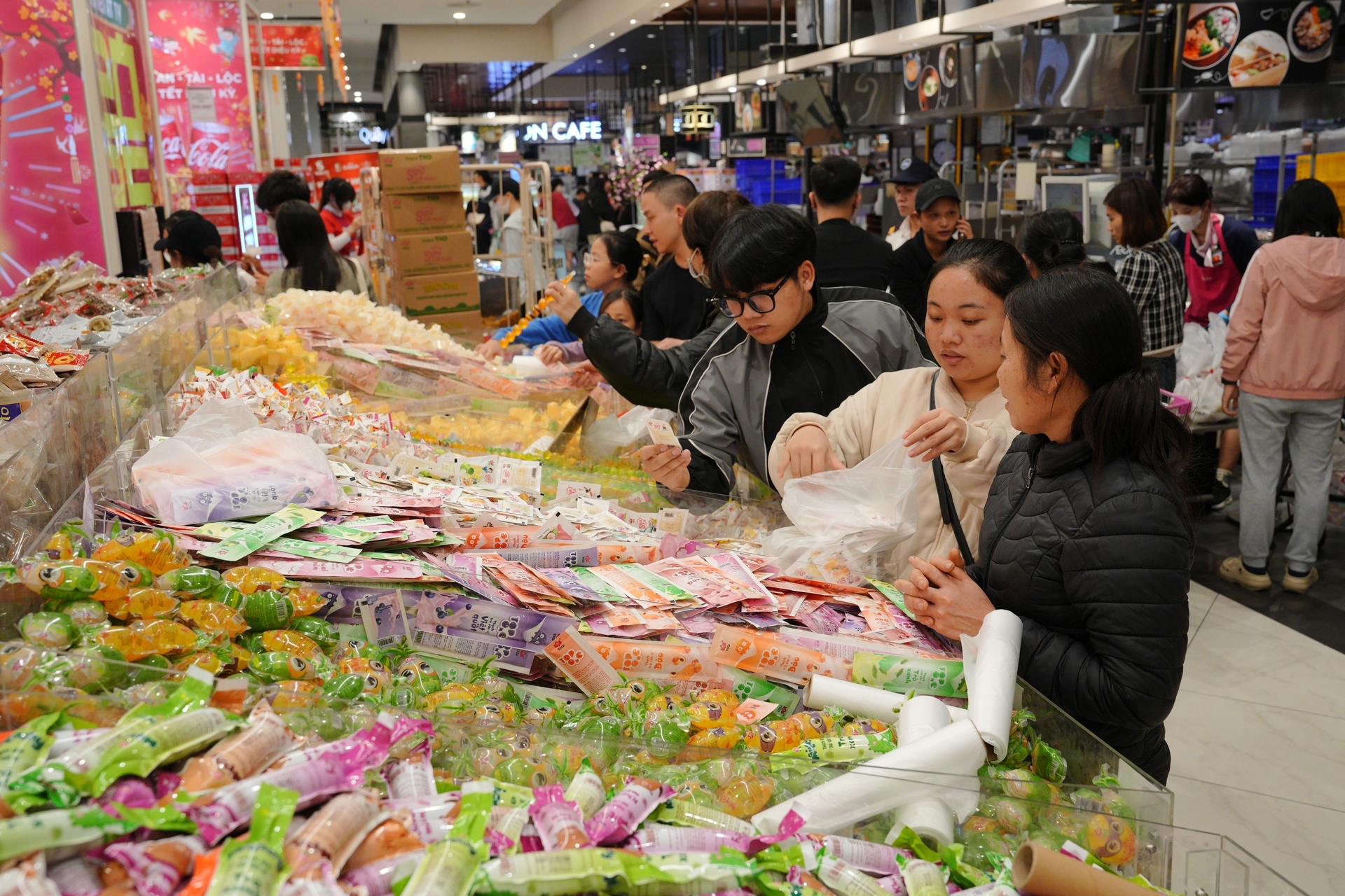 Bên cạnh thực phẩm, các mặt hàng như bánh kẹo, nho khô và mứt Tết luôn được nhiều người ưa chuộng trong dịp Tết