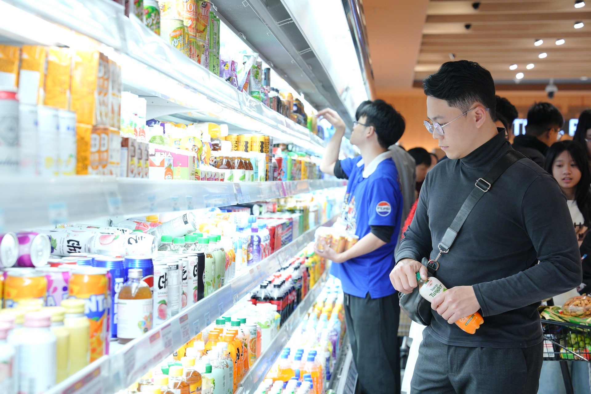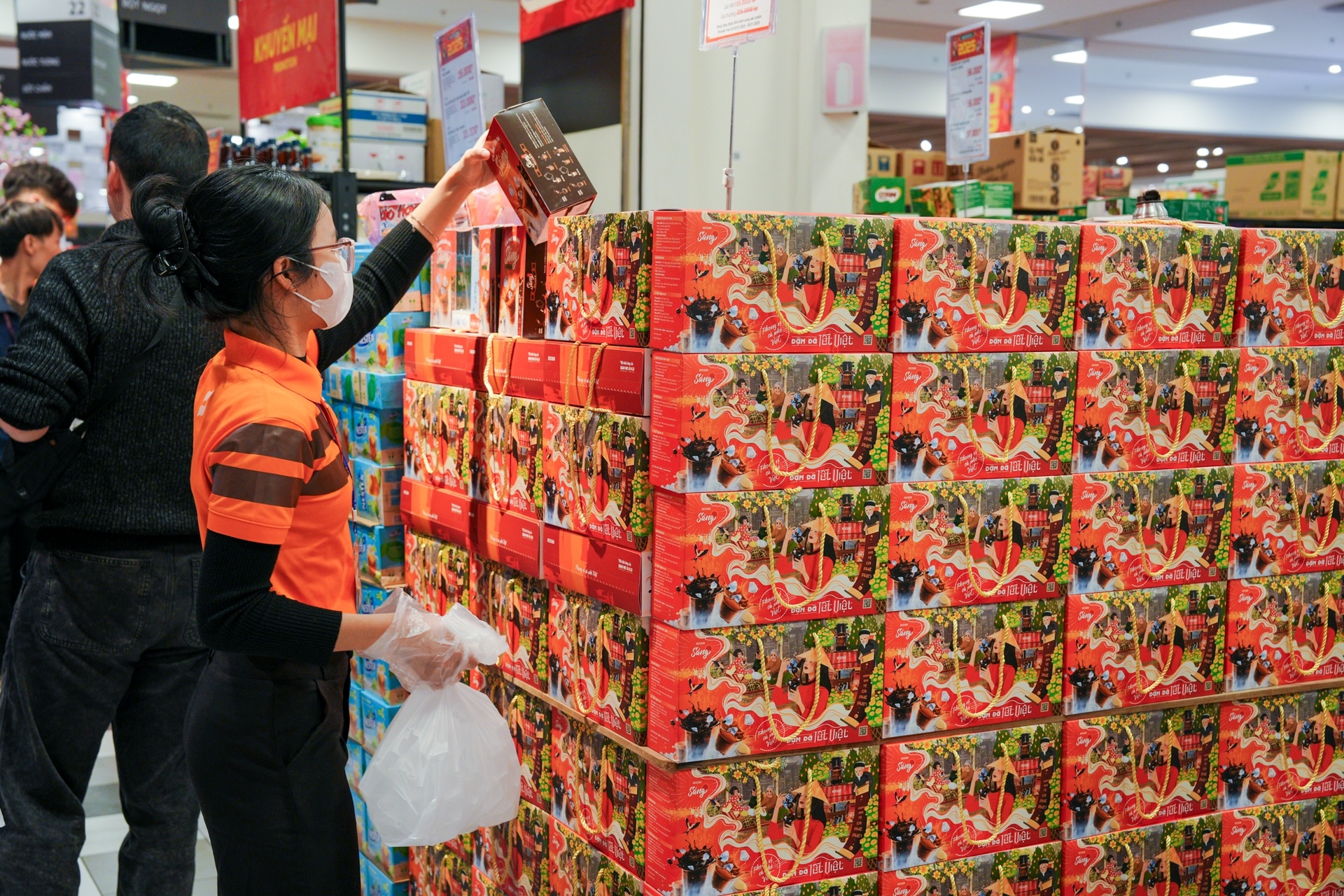 Lúc 20h tại một siêu thị ở quận Hà Đông, các gian hàng chật kín khách mua sắm. Theo nhân viên siêu thị, khoảng một tuần trở lại đây, lượng khách tăng đột biến do nhu cầu sắm Tết, đặc biệt là vào buổi tối và cuối tuần.