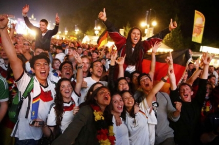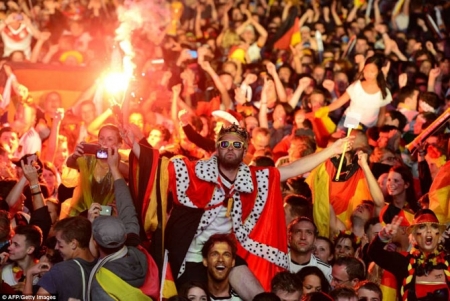 Nhiều xe ôtô đồng loạt hú lên từng hồi còi dài hứng khởi khi đội trưởng Philipp Lahm nâng cao chiếc cúp tại Thánh đường bóng đá ở Rio de Janeiro. Trong thời khắc tuyệt vời, màn pháo hoa rực rỡ được bắn lên ngợp trời, chiếu sáng những gương mặt hạnh phúc hơn bao giờ hết của 250.000 cổ động viên hào hứng tập trung 6 tiếng đồng hồ trước giờ bắt đầu cuộc chạm trán kinh điển tại cổng Brandenburg. Dòng người nườm nượp không ngừng đổ về khu vực tọa lạc của một trong những biểu tượng đẹp nhất của thành phố Berlin đã khiến cảnh sát phải chặn hết các lối vào dù 3 giờ sau đó bóng mới lăn trên chảo lửa Maracana.