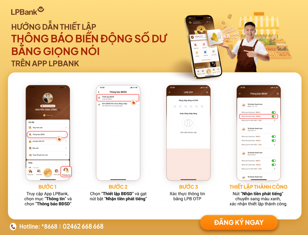 Hướng dẫn kích hoạt dịch vụ Thông báo biến động số dư bằng giọng nói của LPBank