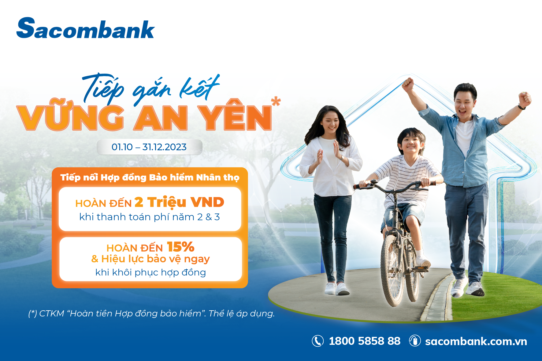 Cụ thể, chương trình khuyến mại “Quay số trúng thưởng” với tên gọi “Đồng hành bình an – Quà sang bùng nổ” dành cho khách hàng tham gia Hợp đồng bảo hiểm nhân thọ mới từ ngày 04/10/2023 đến ngày 31/12/2023 với tổng giá trị giải thưởng gần 3 tỷ đồng, gồm 1 giải đặc biệt là thẻ tiết kiệm 600 triệu đồng, 18 giải nhất là voucher du lịch Úc trị giá 60 triệu đồng/giải, 20 giải nhì là voucher du lịch Nhật Bản trị giá 35 triệu đồng/giải và 27 giải ba là Combo Đa Lợi Sacombank (gồm tài khoản thanh toán, thẻ thanh toán, Ngân hàng điện tử/Sacombank Pay, thông báo giao dịch qua ứng dụng Mobile Banking/Sacombank Pay) có 20 triệu đồng trong tài khoản thanh toán.