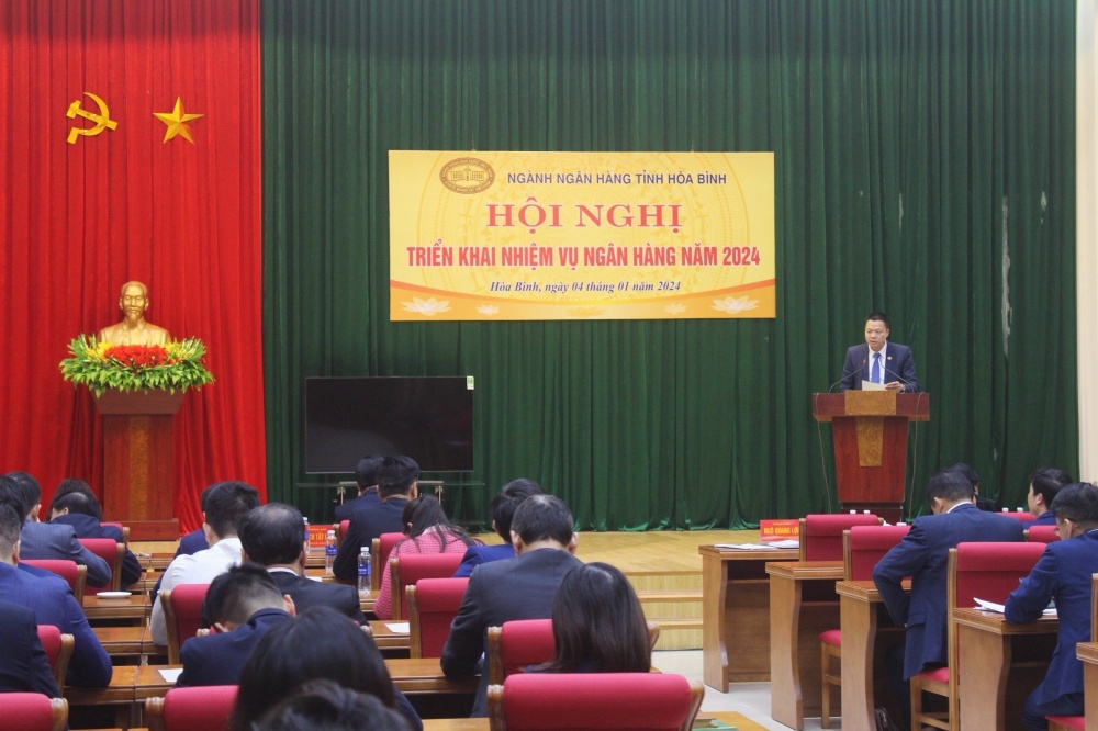 Phát biểu khai mạc Hội nghị, Quyền Giám đốc NHNN Hòa Bình Ngô Quang Lợi nhấn mạnh: Năm 2023, NHNN Việt Nam đã chỉ đạo quyết liệt thực hiện các giải pháp hỗ trợ, khôi phục nền kinh tế, hệ thống ngân hàng Hòa Bình đã có những đóng góp trong việc phát triển kinh tế - xã hội của địa phương và hoàn thành tốt nhiệm vụ được Thống đốc giao trên địa bàn. Hoạt động ngân hàng trên địa bàn ổn định, an toàn, phát triển bền vững.