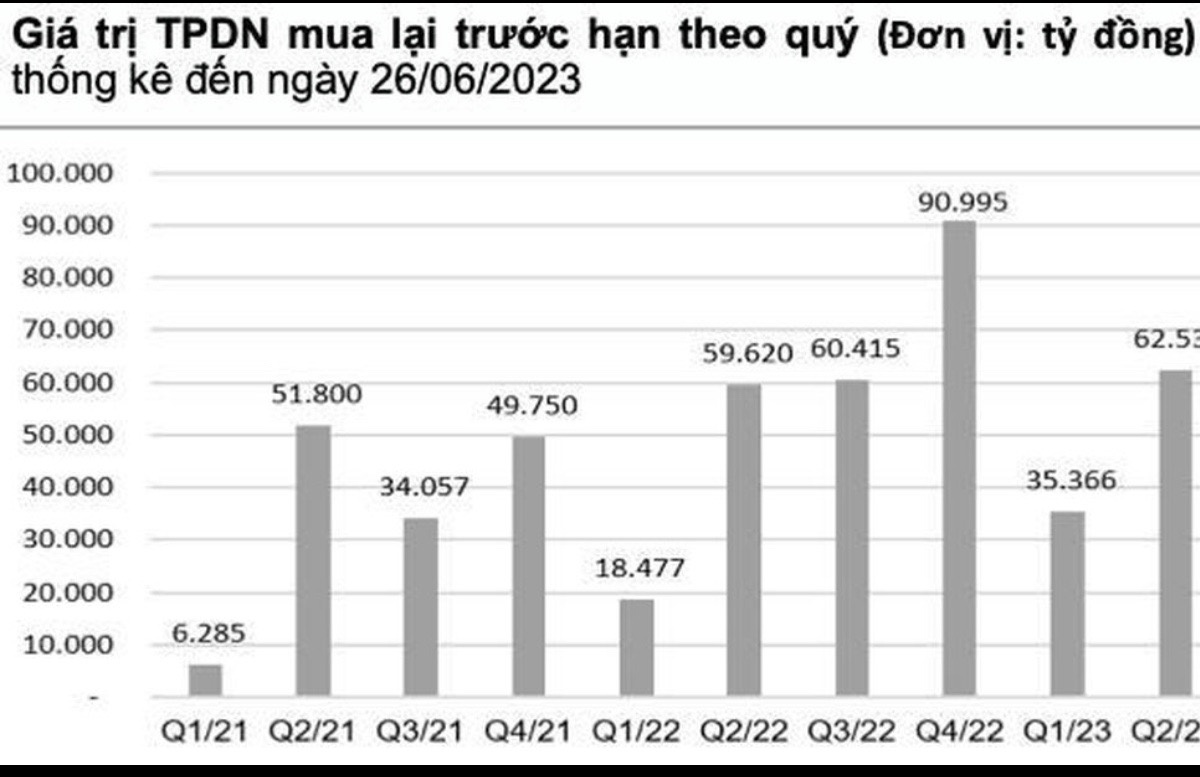 Trong khi đó, hoạt động mua lại trái phiếu doanh nghiệp trước hạn bất ngờ gia tăng trong khi danh sách các doanh nghiệp chậm thanh toán theo công bố của HNX vẫn tiếp tục tăng lên. Tổng giá trị trái phiếu doanh nghiệp được mua lại trước hạn trong quý II/2023 đạt hơn 62.535 tỷ đồng tăng 76,8% so với quý 1/2023 và tăng 4,9% so với cùng kỳ.