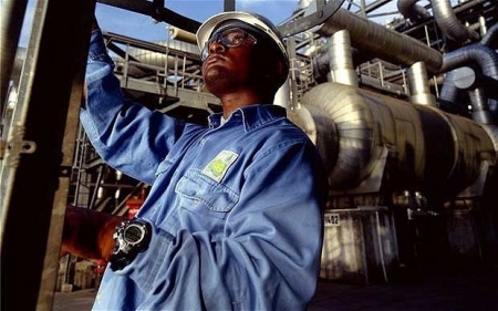 Một công nhân Nigeria làm việc trong một nhà máy lọc dầu ở nước này