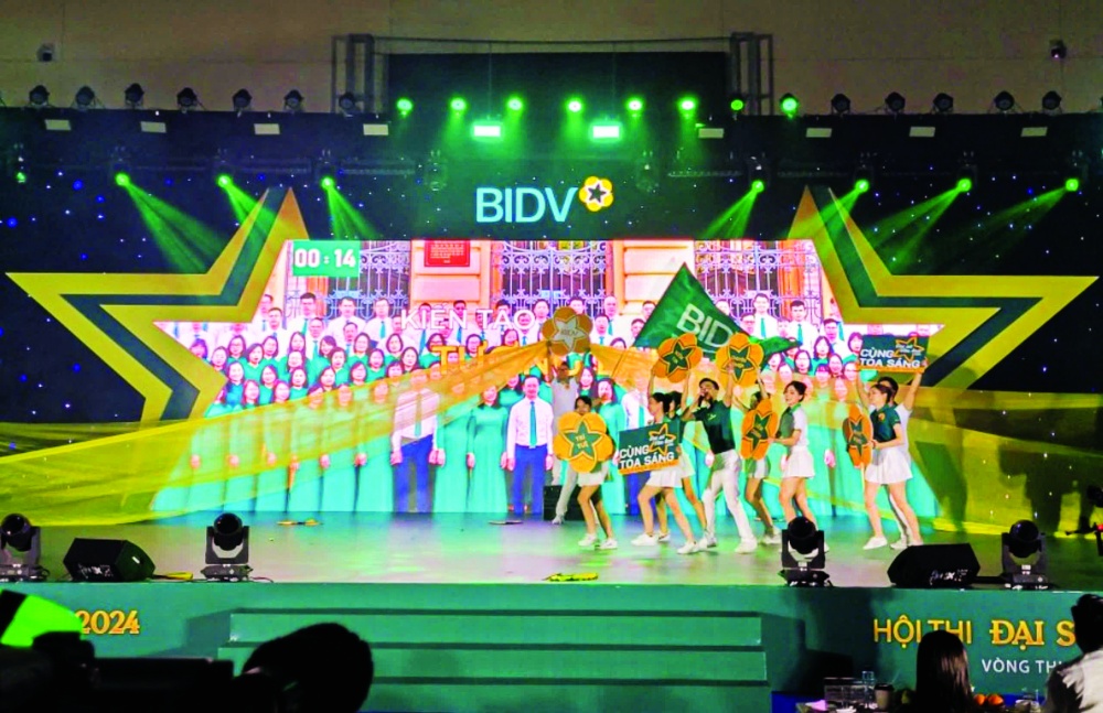 | Đội BIDV chi nhánh Hà Nội mang đến hội thi phần giới thiệu ấn tượng |