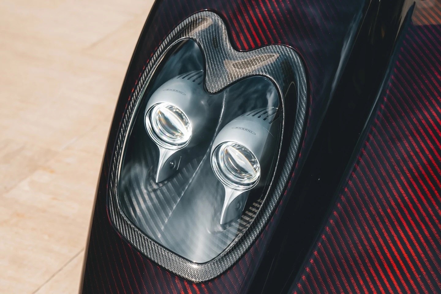 Điểm khác biệt so với các thế hệ trước là cụm đèn pha giữ cấu trúc hai bóng nhưng được tinh chỉnh gọn gàng, tạo thành khối thống nhất. Cặp gương chiếu hậu lấy cảm hứng từ đôi mắt trên Huayra được đặt thấp hơn để tối ưu khí động học. Thiết kế cửa gull-wing (cánh bướm) và nắp ca-pô, nắp khoang động cơ mở ngược – đặc trưng từ Zonda và Huayra – được giữ nguyên.