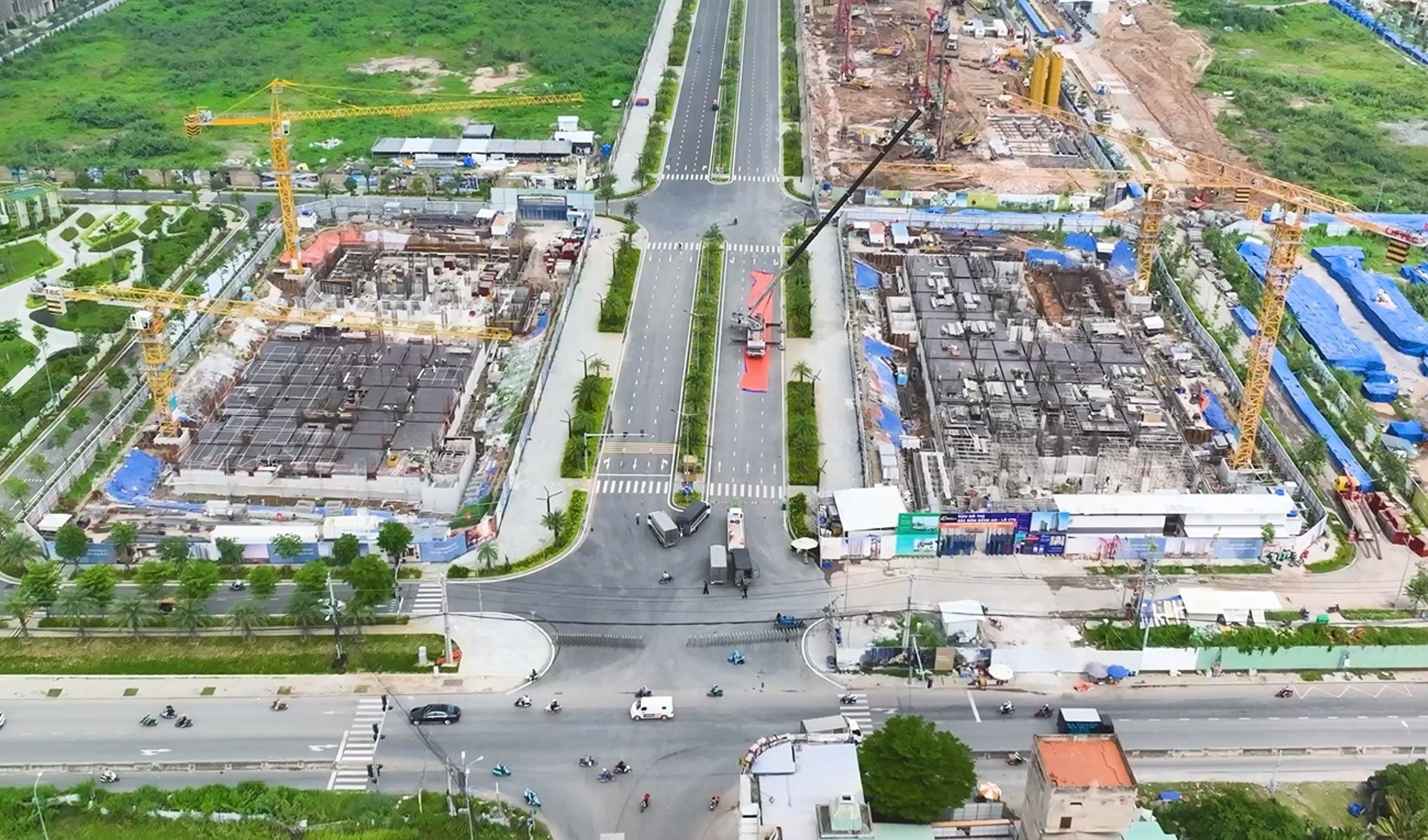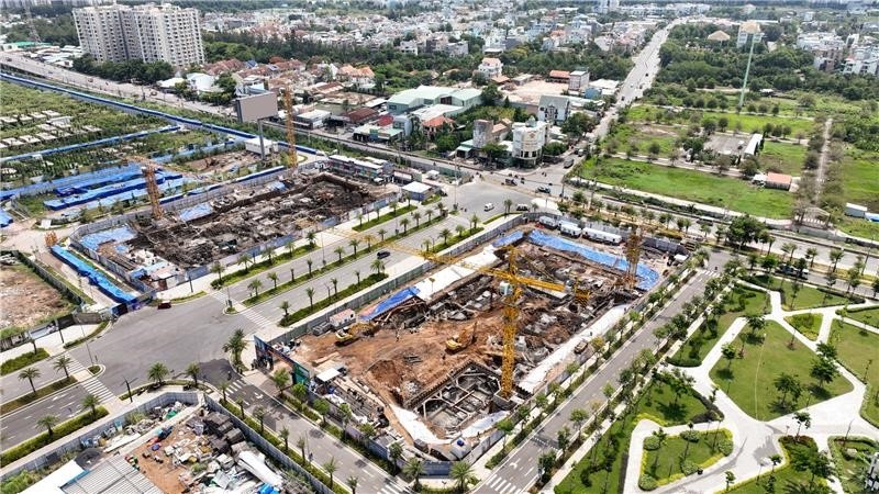| The Global City thi công đồng loạt tại nhiều khu vực, công trường đông đúc ngày đêm |