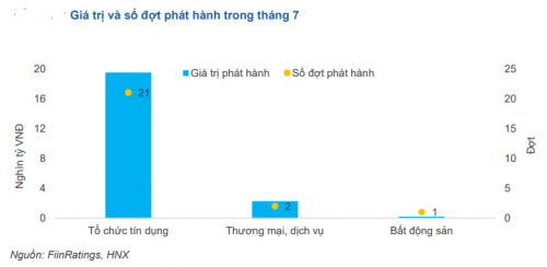 Các đợt phát hành lớn nhất đến từ các tổ chức tín dụng, nổi bật là đợt phát hành của Công ty Tài chính cổ phần điện lực (EVNFinance) với giá trị đạt 1,725 nghìn tỷ đồng; NHTMCP Đầu tư và Phát triển Việt Nam (BIDV) với giá trị đạt 1,5 nghìn tỷ đồng; NHTMCP Phương Đông (OCB) với giá trị đạt 1 nghìn tỷ đồng.