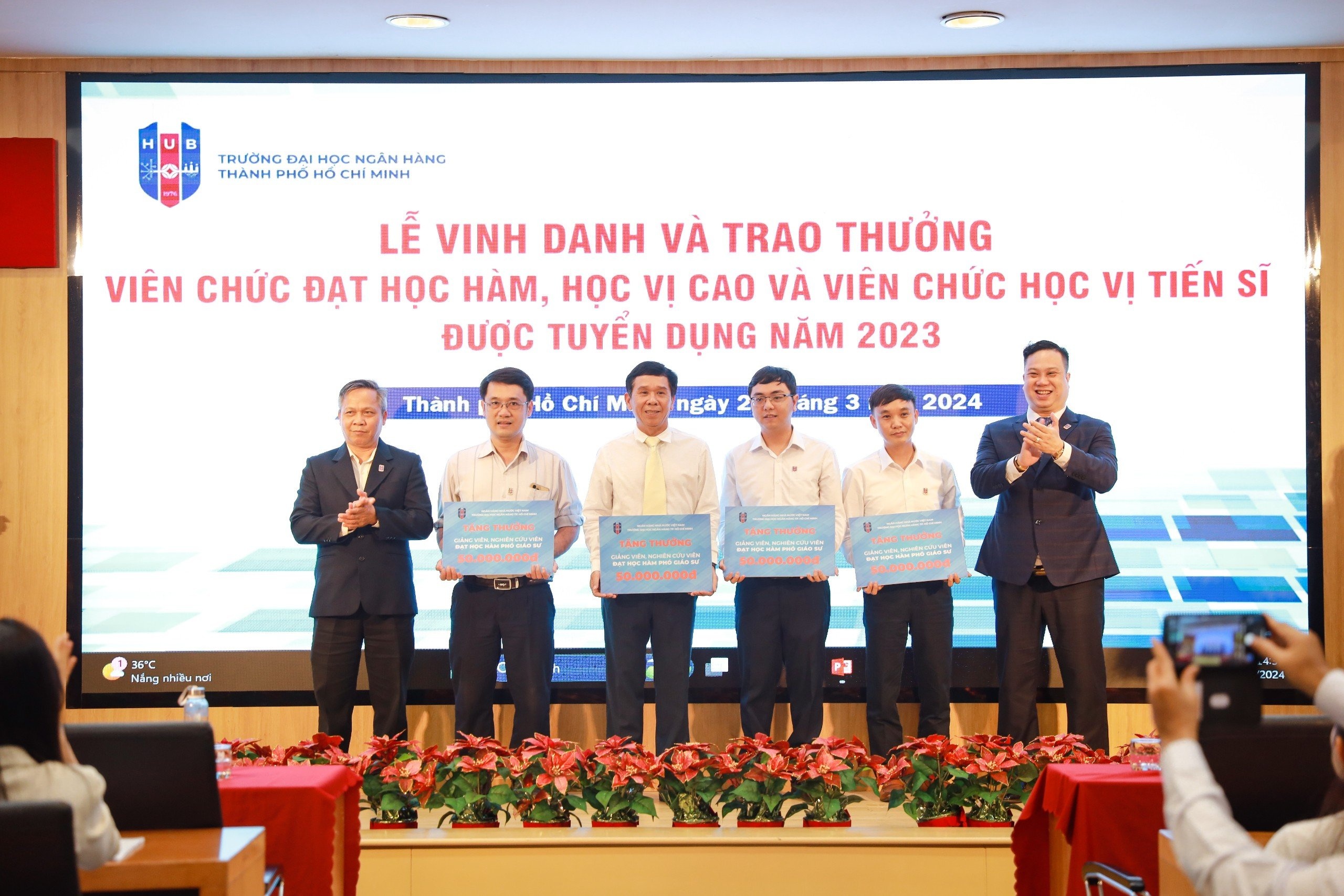 | Tại Lễ Khai giảng, Vụ Tổ chức cán bộ (NHNN) thừa ủy quyền của Thống đốc NHNN công bố quyết định trao cho sinh viên Trường Đại học Ngân hàng TP.HCM 104 suất học bổng và khen thưởng với tổng giá trị 957 triệu đồng. Trong đó có học bổng đặc biệt của Thống đốc cho 8 sinh viên xuất sắc và học bổng của ngành Ngân hàng cho 72 sinh viên, mỗi suất học bổng trị giá 10 triệu đồng. Bên cạnh đó, các ngân hàng thương mại cổ phần, tổ chức tài chính luôn đồng hành với các bạn sinh viên trong hành trình chinh phục những ước mơ, hoài bão như MB Bank, Nam A Bank, Kasikornbank, Agribank Chi nhánh 7, Vietcombank Chi nhánh Kỳ Đồng, Vietinbank Chi nhánh TP.HCM, Eximbank, ACB, VP Bank, KPMG... có nhiều suất học bổng ý nghĩa trao cho những bạn sinh viên có thành tích học tập xuất sắc và sinh viên có hoàn cảnh khó khăn nhưng vẫn vươn lên đạt thành tích cao trong học tập. |