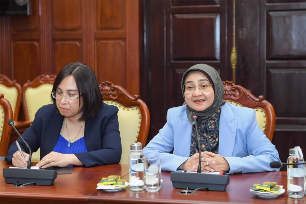 | Bà Yati Kurniati - Giám đốc điều hành Văn phòng Nhóm Đông Nam Á tại Quỹ Tiền tệ Quốc tế (IMF) phát biểu tại buổi tiếp |