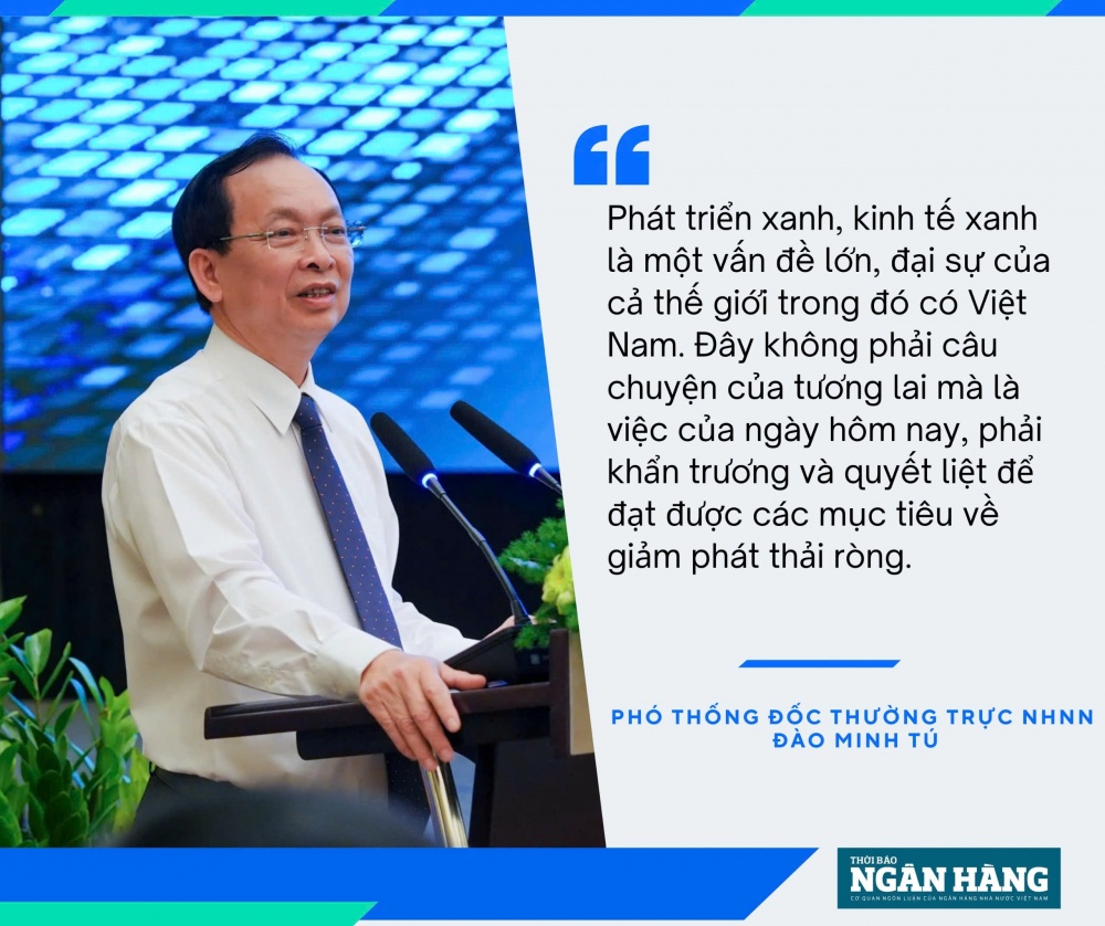 Phó Thống đốc Thường trực Đào Minh Tú nhấn mạnh, có thể thấy phát triển xanh, kinh tế xanh là một vấn đề lớn, đại sự của cả thế giới trong đó có Việt Nam, đây không phải câu chuyện của tương lai mà là việc của ngày hôm nay, phải khẩn trương và quyết liệt để đạt được các mục tiêu về giảm phát thải ròng.