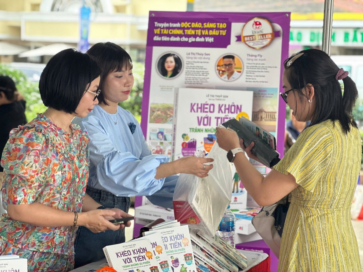 | Tại sự kiện Ngày không tiền mặt cuốn truyện tranh kiến thức tài chính cho gia đình Việt “Khôn khéo với tiền – tránh những ưu phiền” của tác giả Lê Thị Thuý Sen - Tổng Biên tập Thời báo Ngân hàng nhận được sự đón nhận nồng nhiệt của bạn đọc yêu sách tại TP. Hồ Chí Minh |