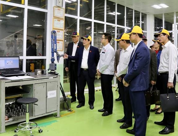 | Bí thư Tỉnh ủy Bùi Minh Châu và Đoàn Giám sát thăm, nắm bắt tình hình sản xuất kinh doanh và tiếp cận vốn tín dụng tại Công ty TNHH Công nghệ Cosmos 1, KCN Thụy Vân, thành phố Việt Trì. |