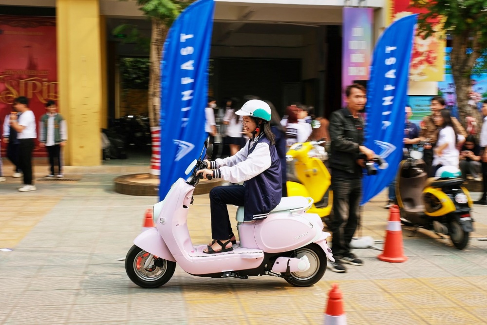 | Theo bạn Huỳnh Anh (THPT Nguyễn Hữu Cảnh, TP.HCM), thiết kế của xe VinFast nhỏ gọn, dễ kiểm soát và phù hợp với các bạn học sinh nên sẽ an toàn hơn khi tham gia giao thông. |