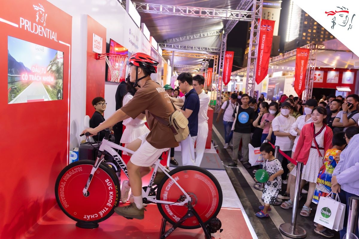 Tại khu vực sự kiện, khách tham quan được trải nghiệm các hoạt động tương tác thú vị với cơ hội nhận được nhiều phần quà “đậm chất Prudential”. Trong đó, phải kể tới trò chơi đạp xe có tên gọi “Đồng hành cùng Prudential trên hành trình phát triển bền vững” và đố vui “Prudential 101”. Đây là các hoạt động thử thách người chơi cả về thể chất lẫn khả năng ghi nhớ.