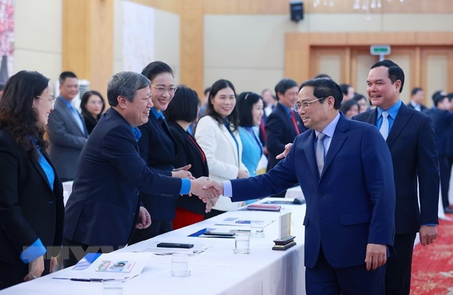 | Thủ tướng yêu cầu các cấp công đoàn tuyên truyền, phổ biến, đưa các nghị quyết, chính sách, pháp luật của Đảng, Nhà nước đến với đoàn viên, người lao động - Ảnh: TTXVN |