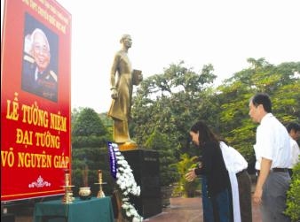 Tại sân trường Quốc học, nơi có tượng đài Chủ tịch Hồ Chí Minh thời niên thiếu diễn ra nhiều hoạt động hướng về người học trò xuất sắc, góp phần làm rạng danh ngôi trường mà điểm nhấn là lễ tưởng niệm cố Đại tướng Võ Nguyên Giáp. Mở đầu lễ tưởng niệm, thầy giáo Nguyễn Đình Thí, giới thiệu vắn tắt tiểu sử của Đại tướng nhằm nhắc nhở, động viên học sinh của nhà trường phải luôn cố gắng học thật tốt, để xứng đáng với ngôi trường mà Bác Hồ và Đại tướng Võ Nguyên Giáp đã từng theo học.