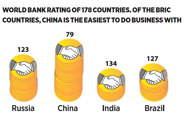 Xếp hạng của Ngân hàng thế giới (WB) trong tổng số 178 quốc gia trên thế giới. Trong khối BRIC, Trung Quốc được đánh giá cao nhất về khả năng trao đổi thương mại
