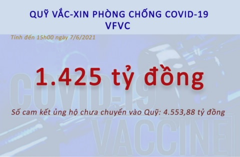 Theo đó, tính đến thời điểm 15 giờ 00 ngày 07/06/2021 đã có 227.862 tổ chức và cá nhân tham gia đóng góp với tổng giá trị quy đổi ra VND là 1.425 tỷ đồng (đã bao gồm ngoại tệ quy đổi) và 4.553,88 tỷ đồng nhà tài trợ đã cam kết nhưng chưa chuyển tiền (Tổng số: 5.978,88 tỷ đồng).