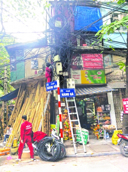Một điều “thú vị” dành cho du khách đến với Hà Nội hiện nay có lẽ phải kể đến “rác trời”. Dễ dàng nhận thấy, các tuyến đường trên phố cổ và các tuyến phố đông người qua lại khác của Hà Nội, mạng nhện lưới điện, dây cáp bủa vây chằng chịt khiến nhiều du khách... phát hoảng; còn người dân thì luôn phải sống trong lo âu.