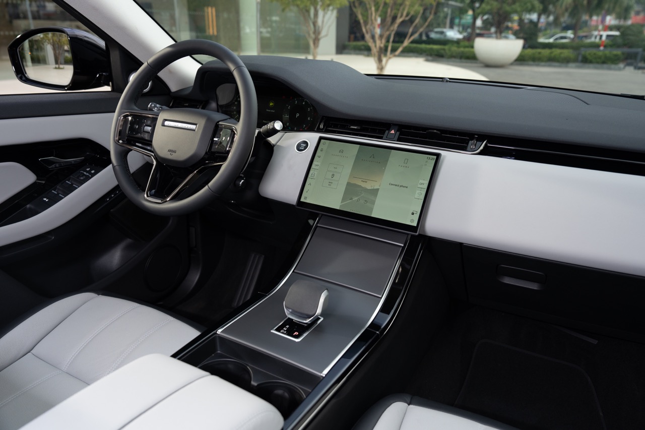 Trang bị nổi bật nhất ở khoang cabin phải nhắc tới màn hình cong kích thước 11,4 inch tích hợp hệ thống giải trí Pivi Pro có khả năng kết nối Apple Carplay & Android Auto không dây. Ngoài ra những chi tiết nổi bật khác bên trong xe có thể kể tới như cần số kiểu mới, cửa sổ trời toàn cảnh, sạc không dây. Hệ thống điều hoà trên Evoque 2025 có khả năng tạo ion và kiểm soát lượng CO2 bên trong khoang cabin.