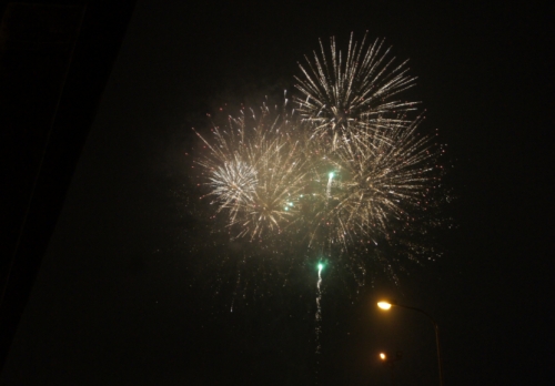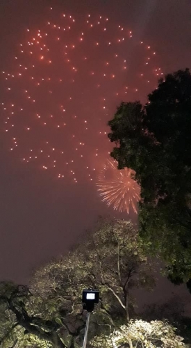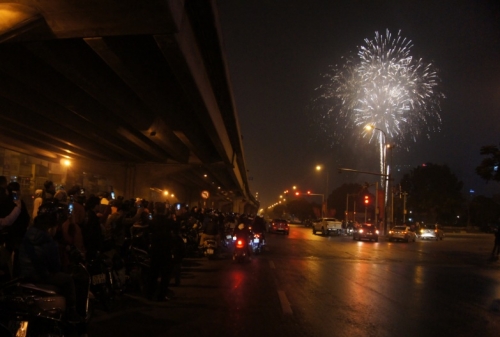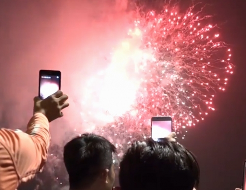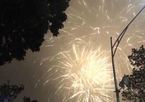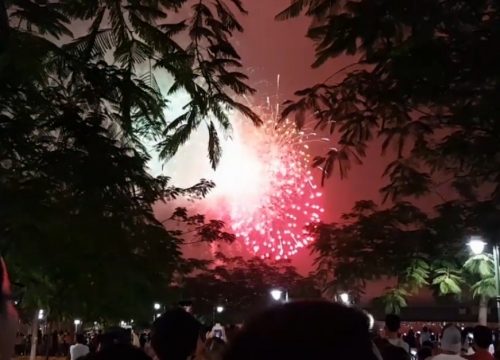 Đúng thời khắc giao thừa, tiếng pháo đì đùng nổ vang, những quả pháo hoa rực sáng trên bầu trời... Mọi người vỡ oà trong niềm vui, hân hoan, không phân biệt quen, lạ, và gửi tới nhau những lời chúc tốt đẹp nhất, mong một năm mới an khang thịnh vượng. Dưới đây là một số hình ảnh người dân đón xem pháo hoa tại Hà Nội.