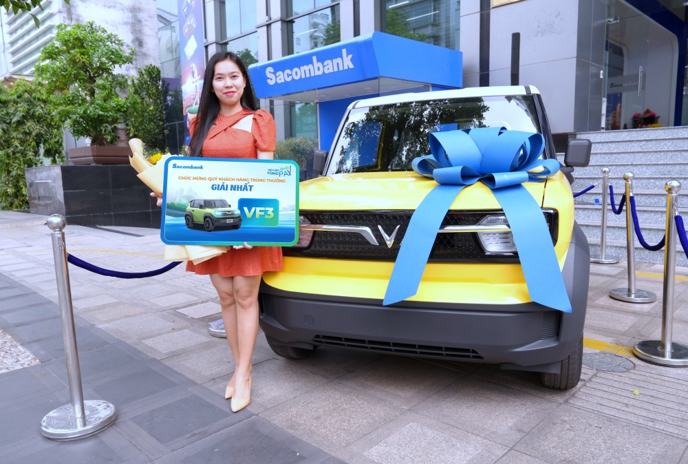 Sacombank trao 2 xe Vinfast VF3, chờ đón chủ nhân Vinfast VF7 Plus