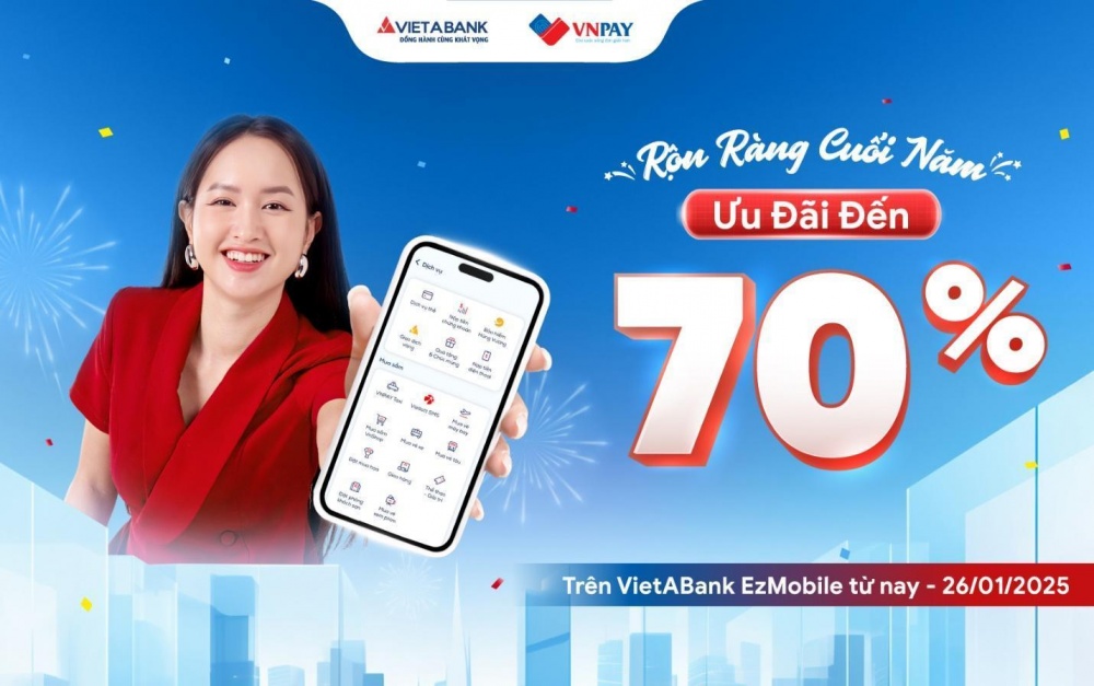 Nhằm giúp khách hàng tiết kiệm thời gian và chi phí, từ nay đến hết ngày 26/1/2025, VietABank EzMobile triển khai chương trình ưu đãi “Mùa lễ hội – Deal gấp bội” với hàng loạt quà tặng và cơ hội mua sắm hấp dẫn.