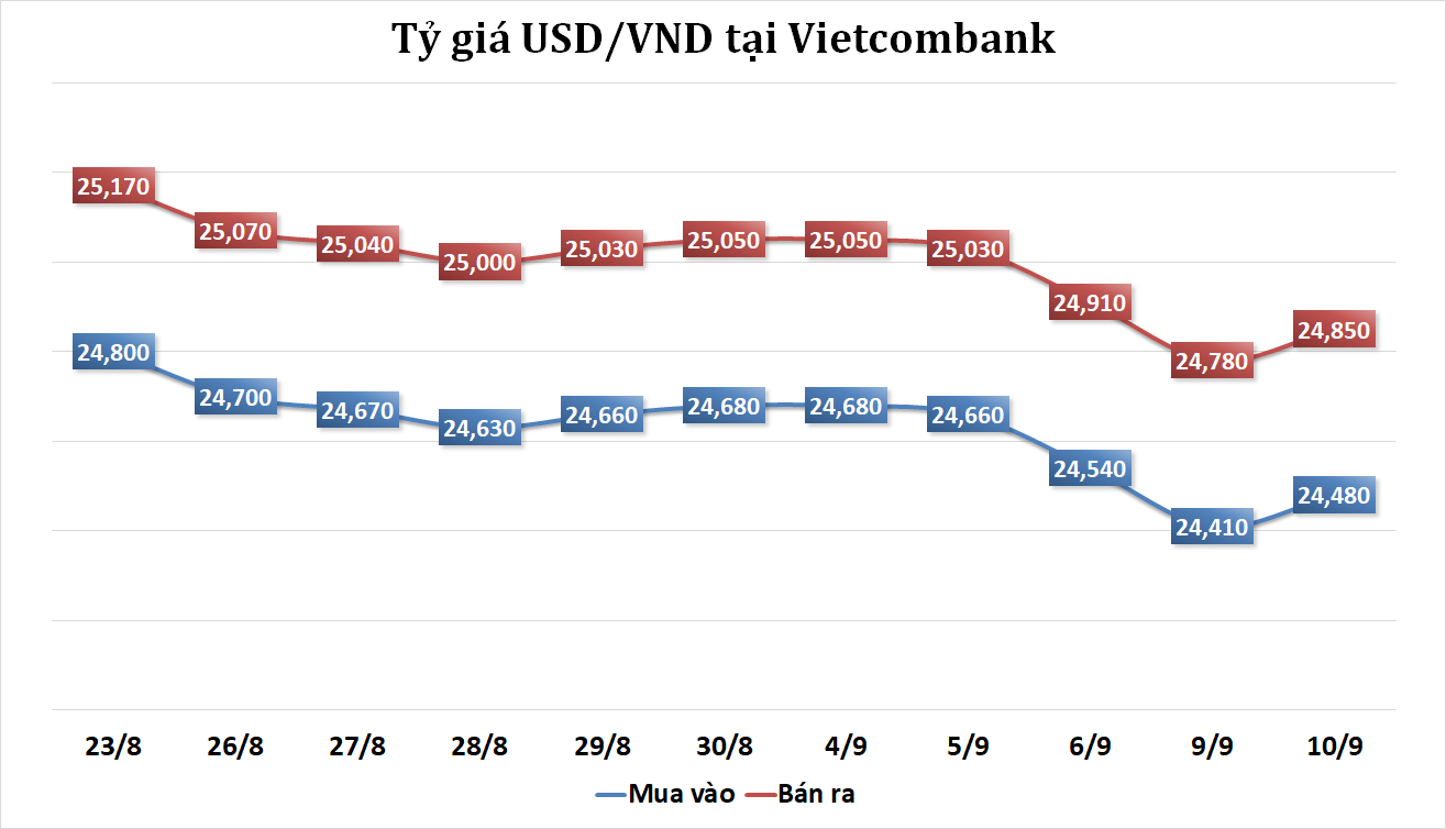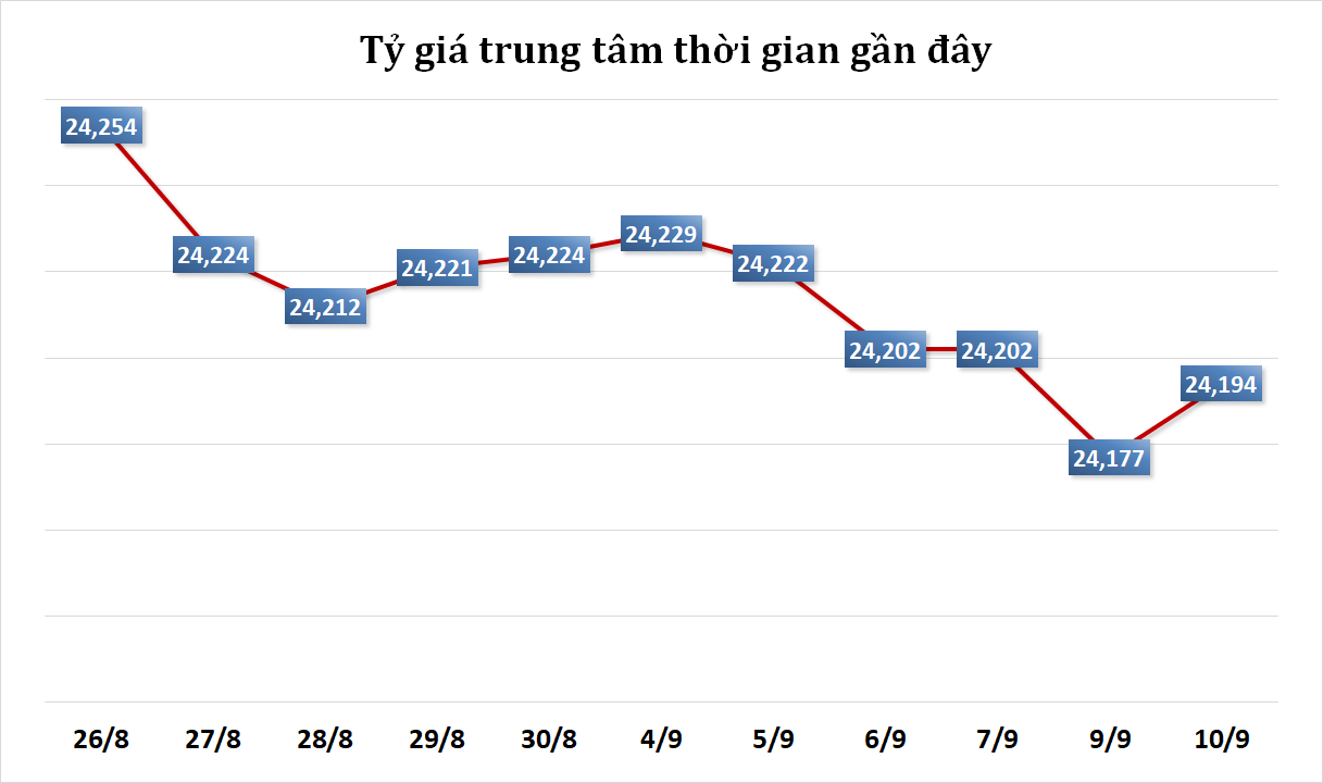 | Sáng 6/9: Tỷ giá trung tâm giảm phiên thứ hai liên tiếp Sáng 9/9: Tỷ giá trung tâm giảm phiên đầu tuần |