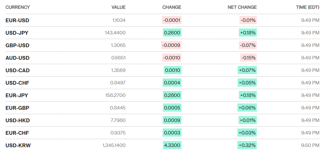So với yên Nhật, bạc xanh tăng 0,18% lên 143,44 JPY/USD, tăng nhẹ so với mức thấp nhất trong một tháng chạm vào thứ Sáu.