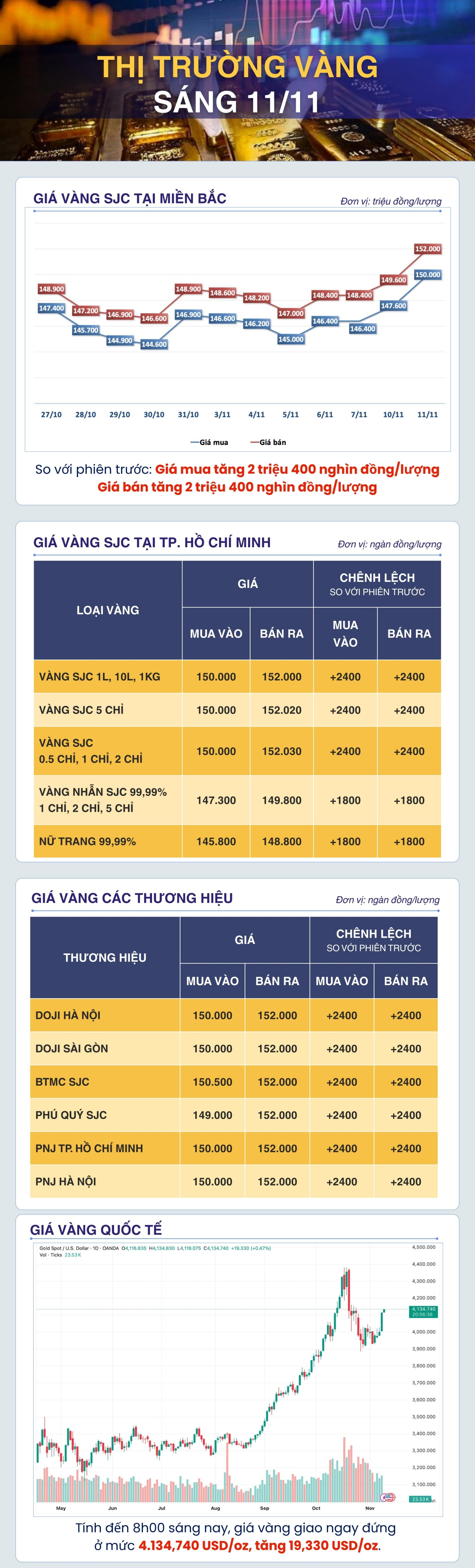 | Thị trường vàng tuần tới: Các chuyên gia giữ thái độ thận trọng Sáng 10/11: Giá vàng thế giới tăng nhẹ, vượt ngưỡng 4.000 USD/oz |