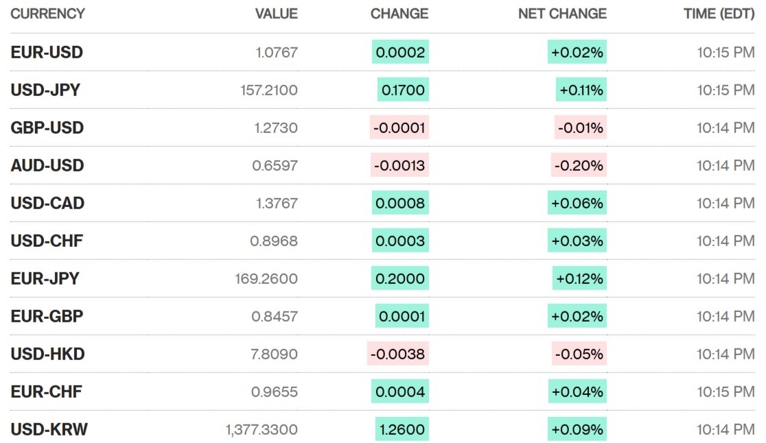 So với đồng yên, đồng USD tăng 0,11%, đứng ở mức 157,21 yên đổi một USD.