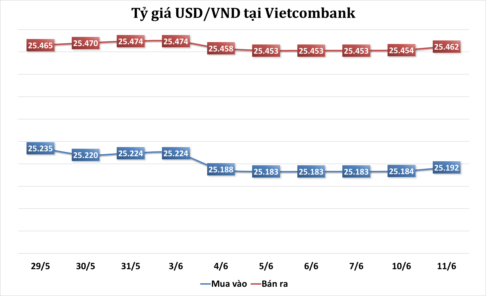 Sáng 11/6: Tỷ giá trung tâm tăng 8 đồng