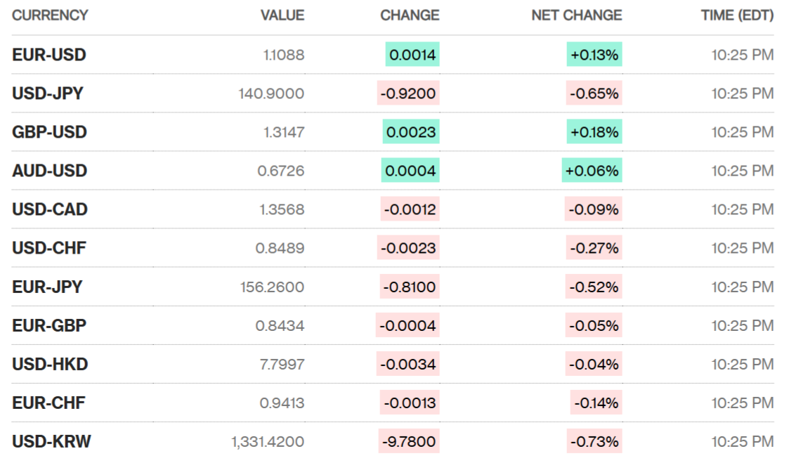 Ở châu Á, đồng yên tăng 0,65% lên 140,90 yên đổi một USD, dao động gần mức cao nhất trong hơn 8 tháng là 140,71 yên đổi một USD đạt được vào thứ Tư.