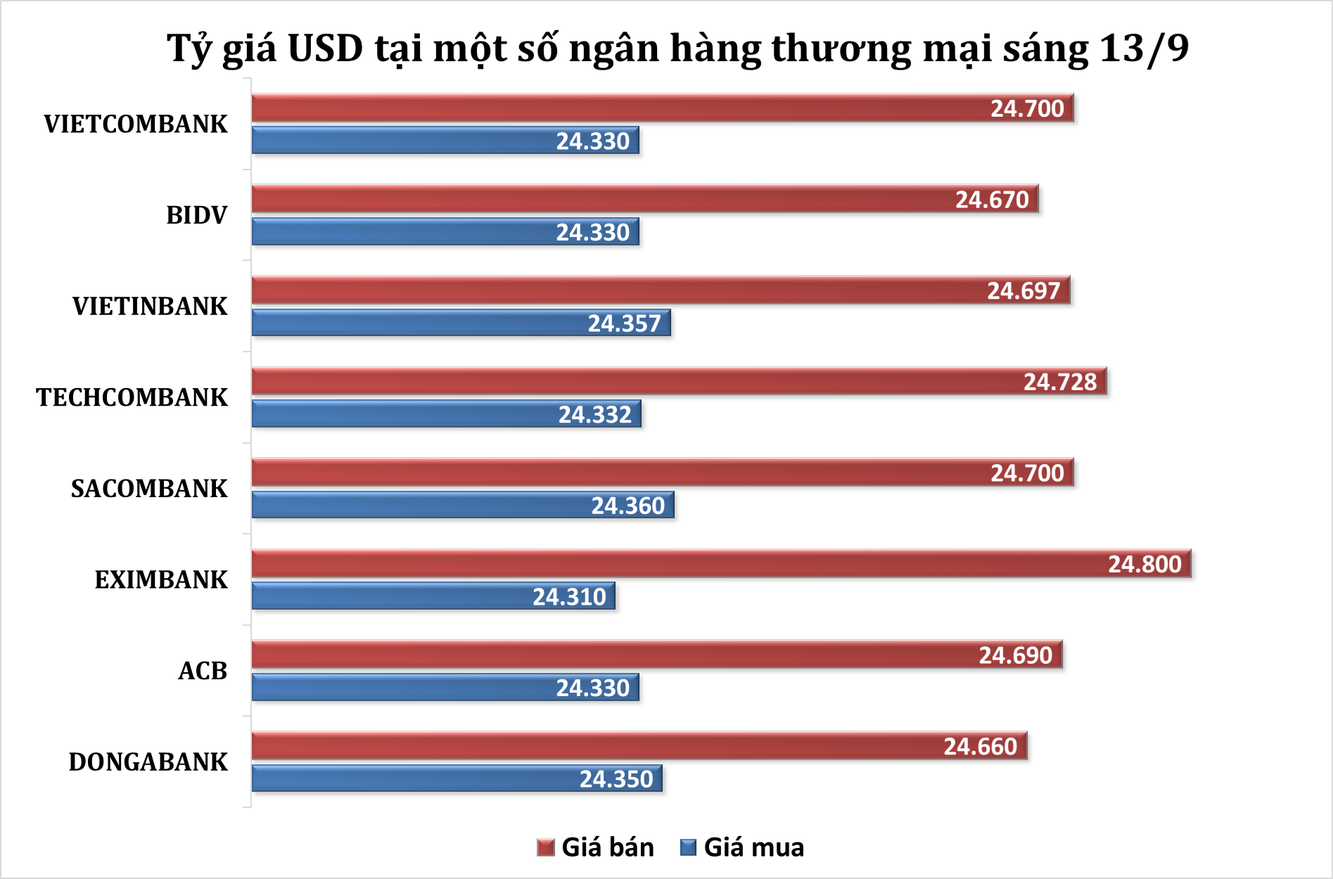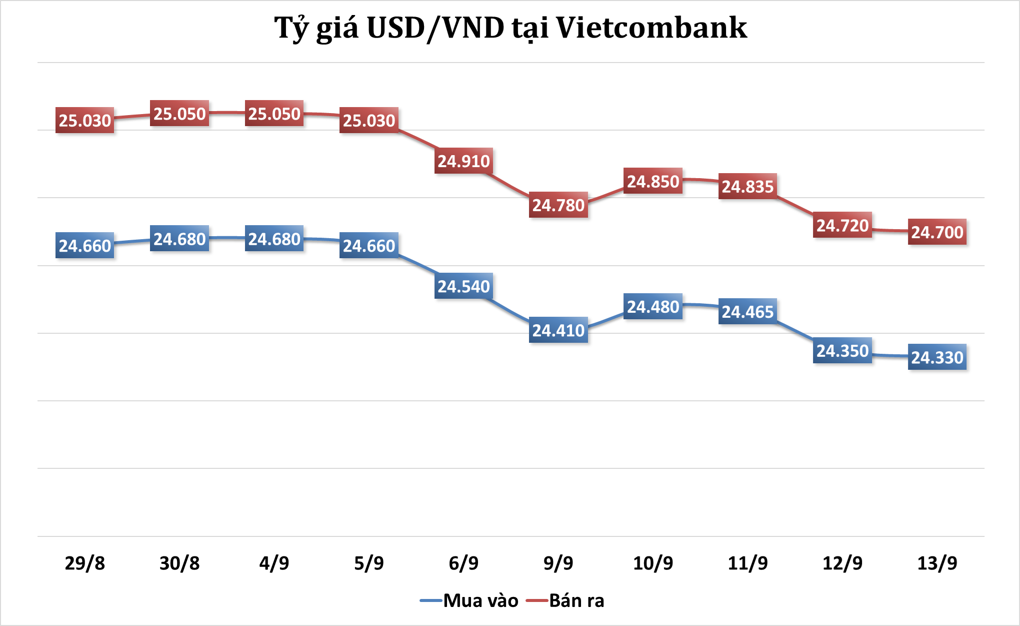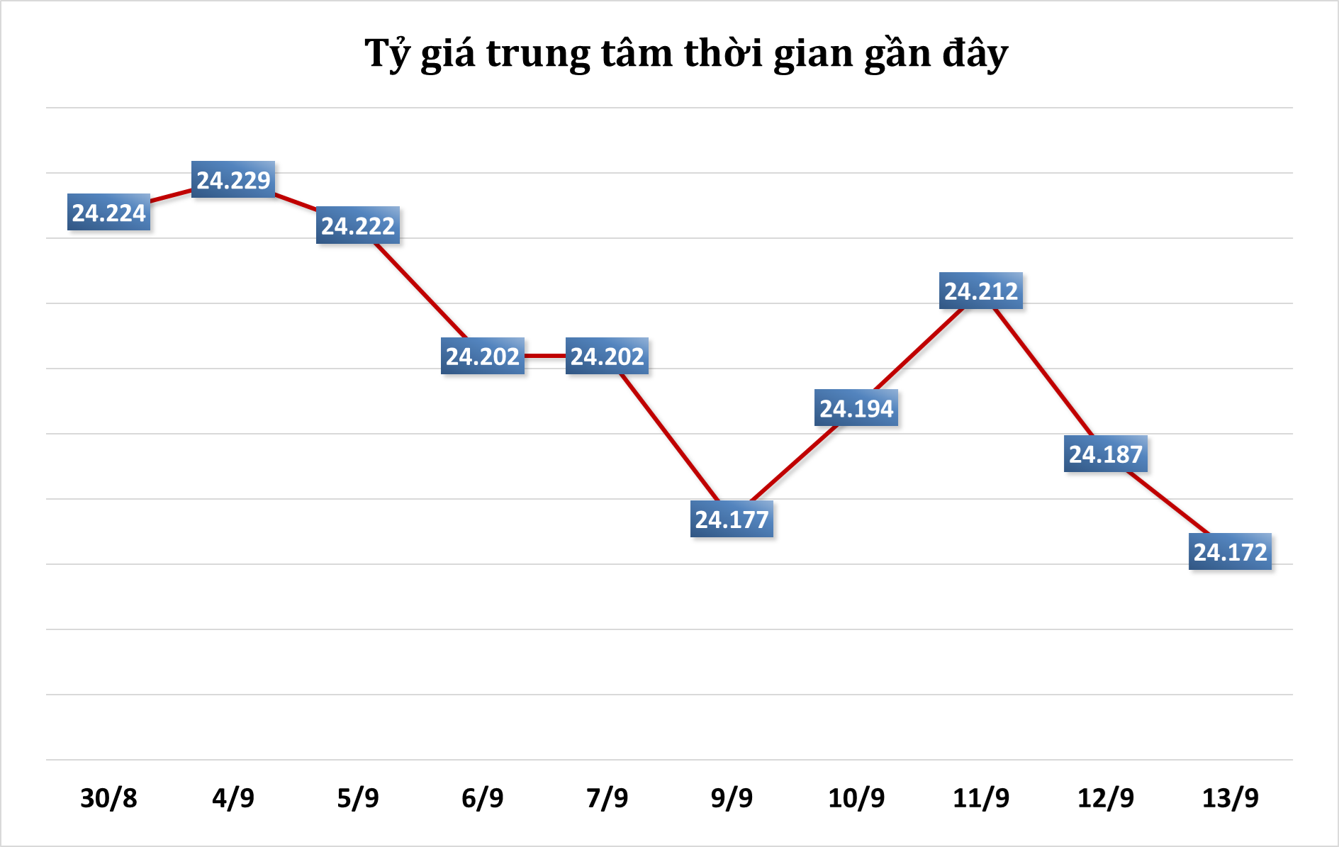 Sáng 13/9: Tỷ giá trung tâm giảm 15 đồng