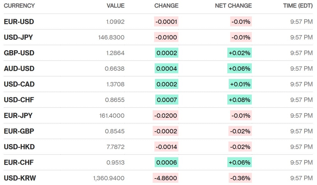 Đồng euro giao dịch ở mức 1,0992 USD, giảm 0,01% sau khi tăng lên mức 1,099975 USD vào phiên trước đó.