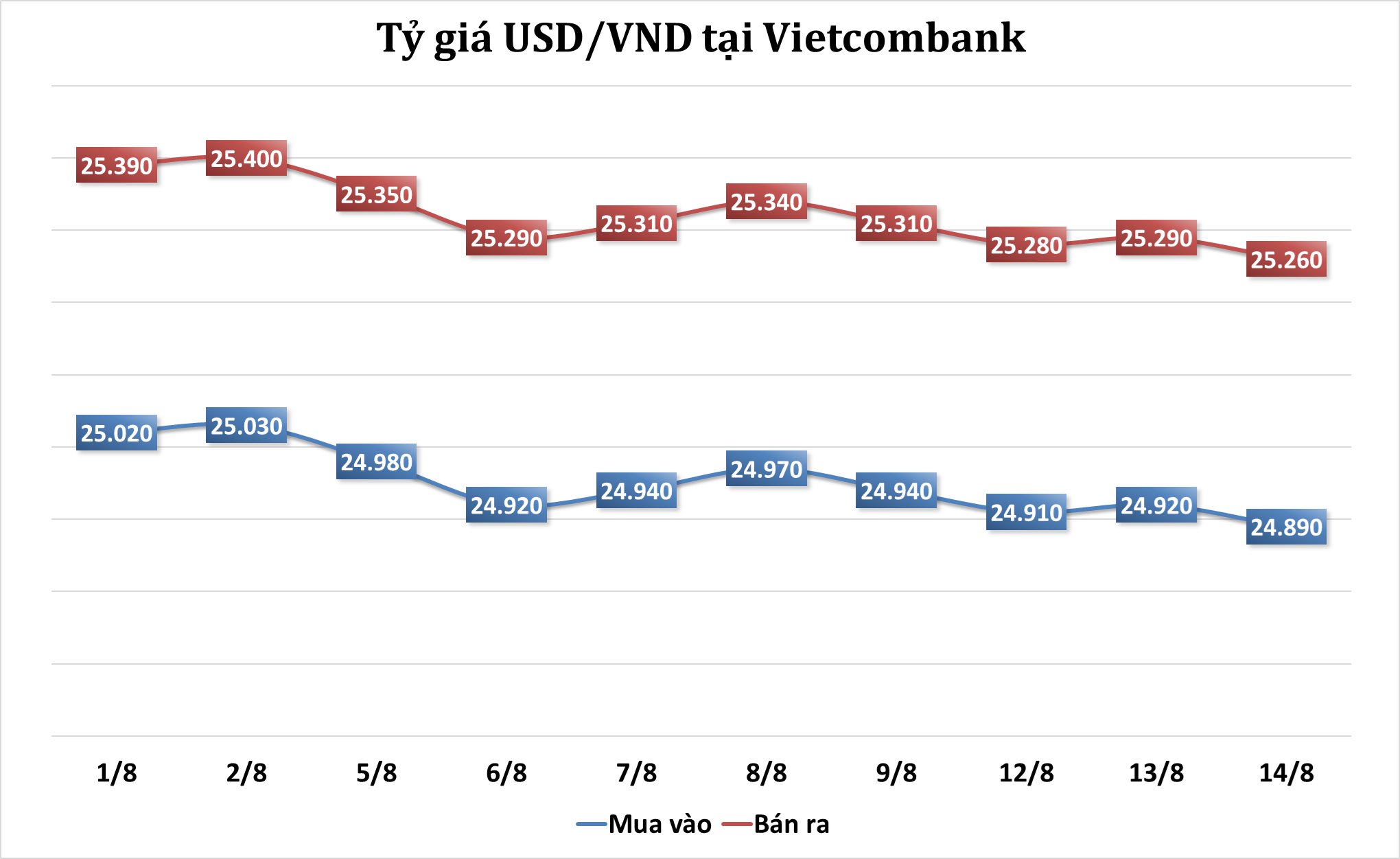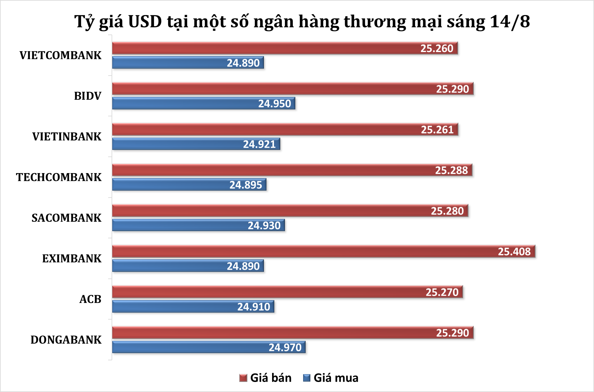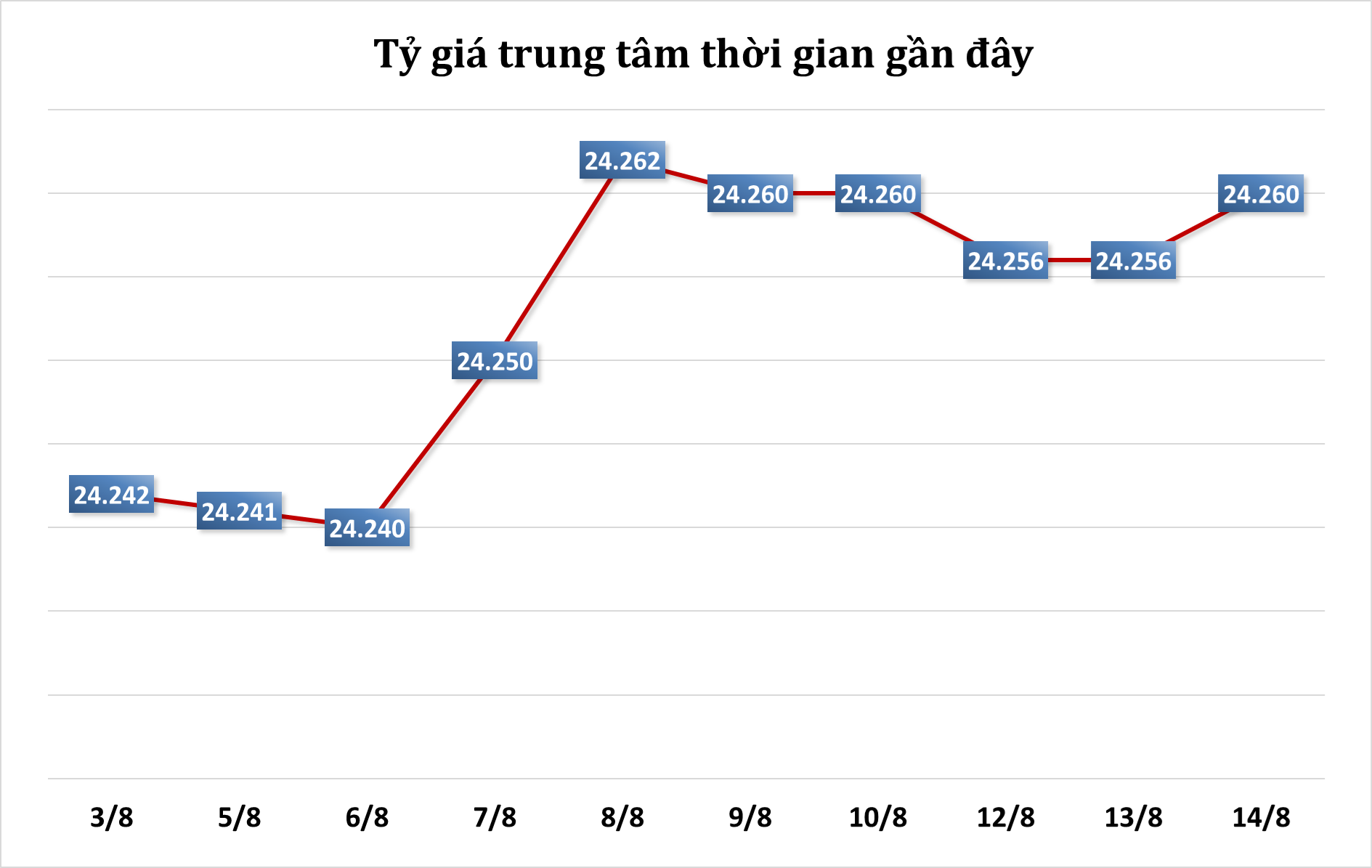 Sáng 14/8: Tỷ giá trung tâm tăng 4 đồng