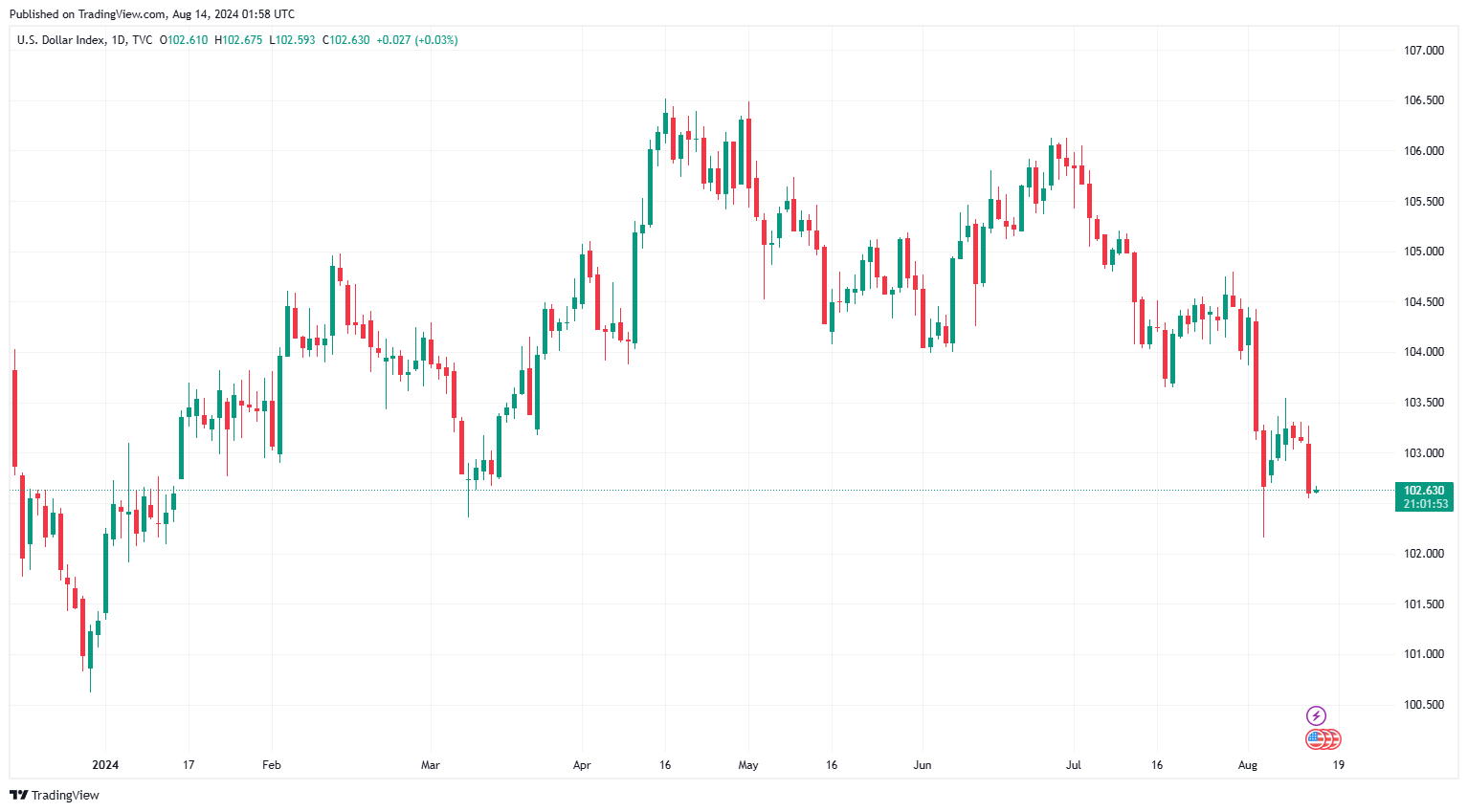 Chỉ số đô la Mỹ (DXY), đo lường biến động của bạc xanh so với 6 đồng tiền chủ chốt (EUR, JPY, GBP, CAD, SEK, CHF), hiện ở mức 102,630 điểm, tăng 0,02 điểm so với thời điểm mở cửa.